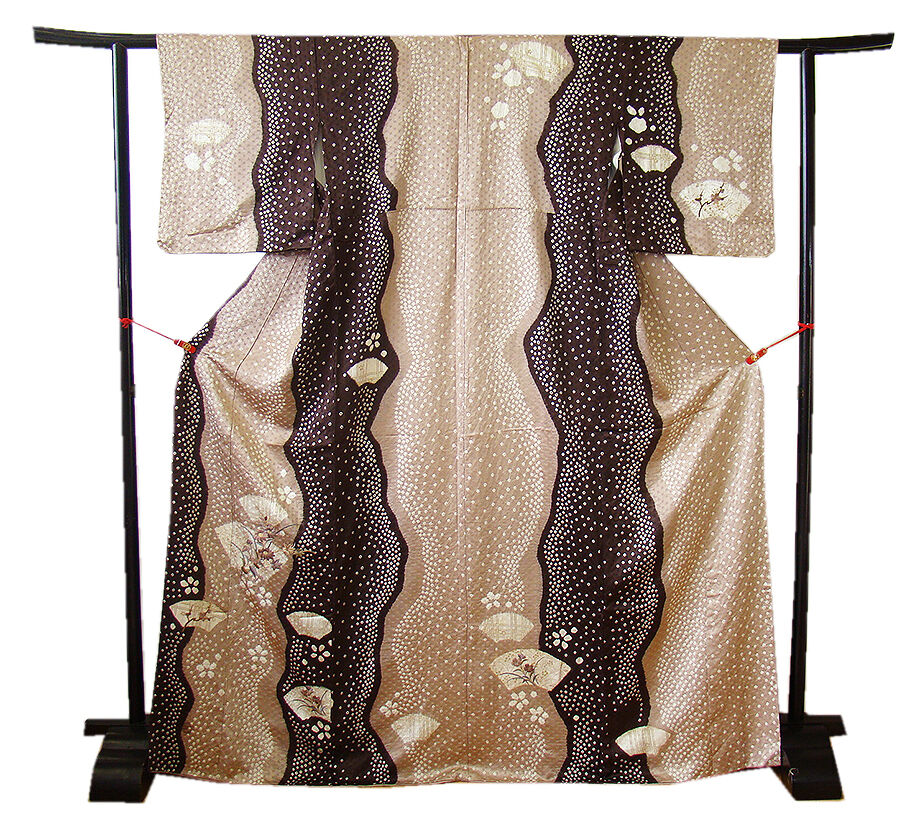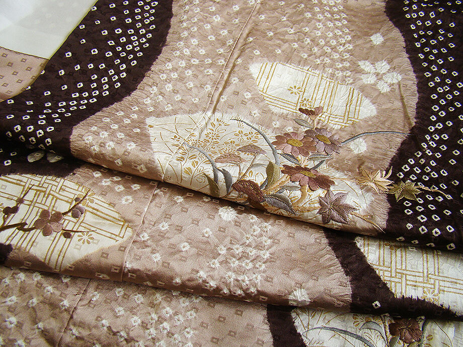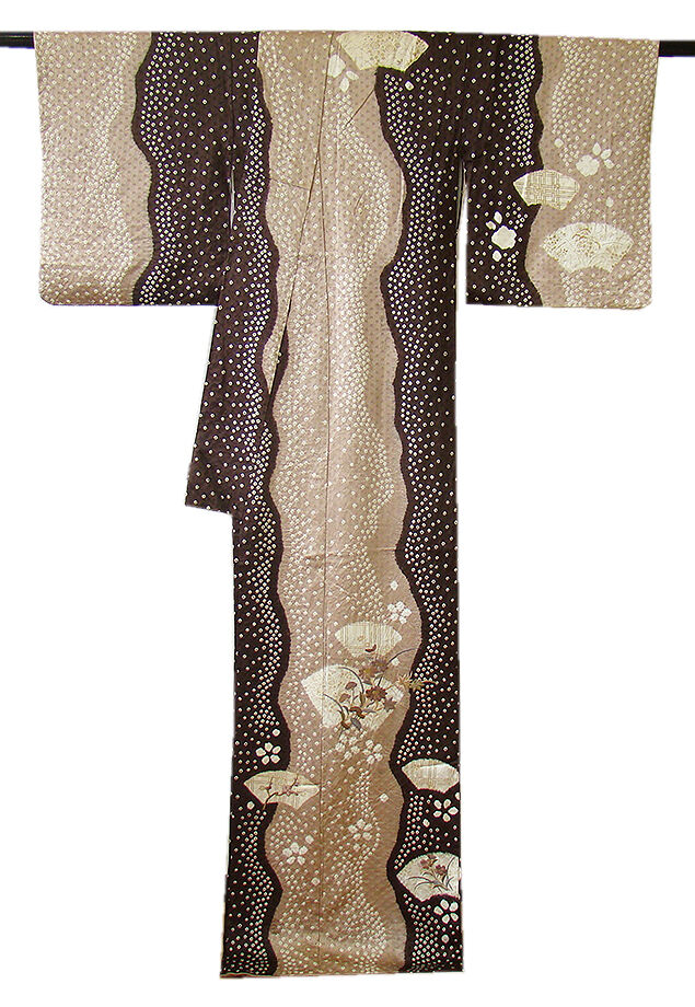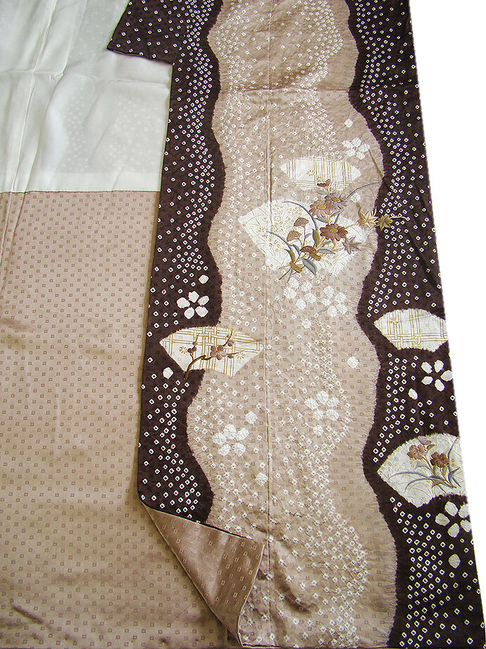 | 商品説明 | こちらのお品は「袷」ですので10月から5月までお召頂ければと思います。 とてもしなやかで柔らかな手触りの滑らかで着心地良い重めの極上綸子地の生地、 白茶色地に渋いチョコレート色ぼかしに地模様入り、白色の鹿の子絞りに 象牙色の地紙文に花草柄の染柄に金彩加工仕立てに刺繍入り、 気品に満ち溢れた彩りが正統派のお着物として一枚は欲しい逸品の素敵なお着物です。 共八掛(正絹)、幅広い年代の方にお召頂けます。 |