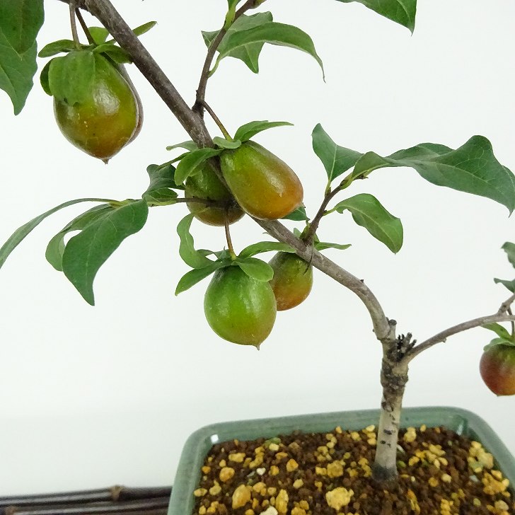 | ■植物ですので撮影時期や季節によって剪定などの手入れにより写真から変化がございます。撮影日をご確認のうえ、ご注文ください。 ■翌年の実付きをよくするために葉が落ちた後の11月末~12月にかけて摘果しています。お届けの商品にはロウヤガキの実がない場合がございます。 ■老爺柿の種類は沢山あり、品種の記載がない商品は仕入れの時点で確認ができておりませんので、その旨ご了承のほどお願いいたします。 【老爺柿盆栽】 開花時期は4~5月頃に花を咲かせます。雌雄異株で、実を成らすためには雌木と雄木が必要になります。小さな実が成る渋柿で、実が枝にぶら下がって成る特徴があります。老爺柿は沢山の品種があり、実の形状や色も様々で、丸い形から細長くとがったもの、大きさも大小があり、色合いも赤みを帯びた橙色から黄色、朱赤など豊富にあります。 |