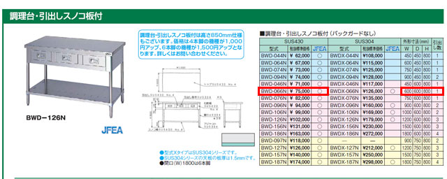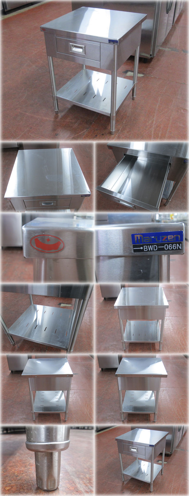 マルゼン 引出付作業台 BWD-066N を出品いたします。 ■特徴■ 天板下に引出しの付いた パイプ脚作業台です。 引出しの取っ手は、SUS304ステンレスを採用。 引出しはゴミが溜まりにくい構造で衛生的です。 堅牢で耐久性に優れた オールフラットスノコ板を採用しました。 機器や食材の収納性に優れ、 掃除もしやすく衛生的に保つことができます。 写真に写っている周りのものは付属しません。 発送はアート家財おまかせ便でお送りします。 送料軽減のため弊社まで 直接引取りに来て頂ける方も歓迎です。 定価75,000円の非常に高価な商品です。 格安出品いたしますのでこの機会をお見逃しなく! |