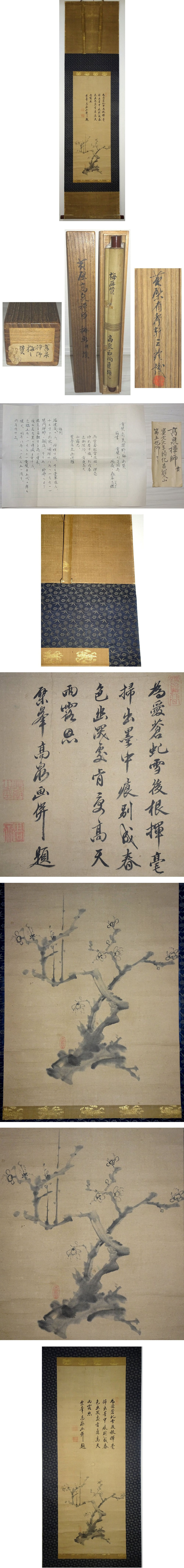 紙本 漆塗軸 真筆保証(真作) 裂三段表装風帯つき(一文字風帯金襴) ウブ幅 森本三鎧の箱書きあり 中身寸法81×30 少し時代等あり 幅自体しっかりしています ※読みあり よろしくお願い致します