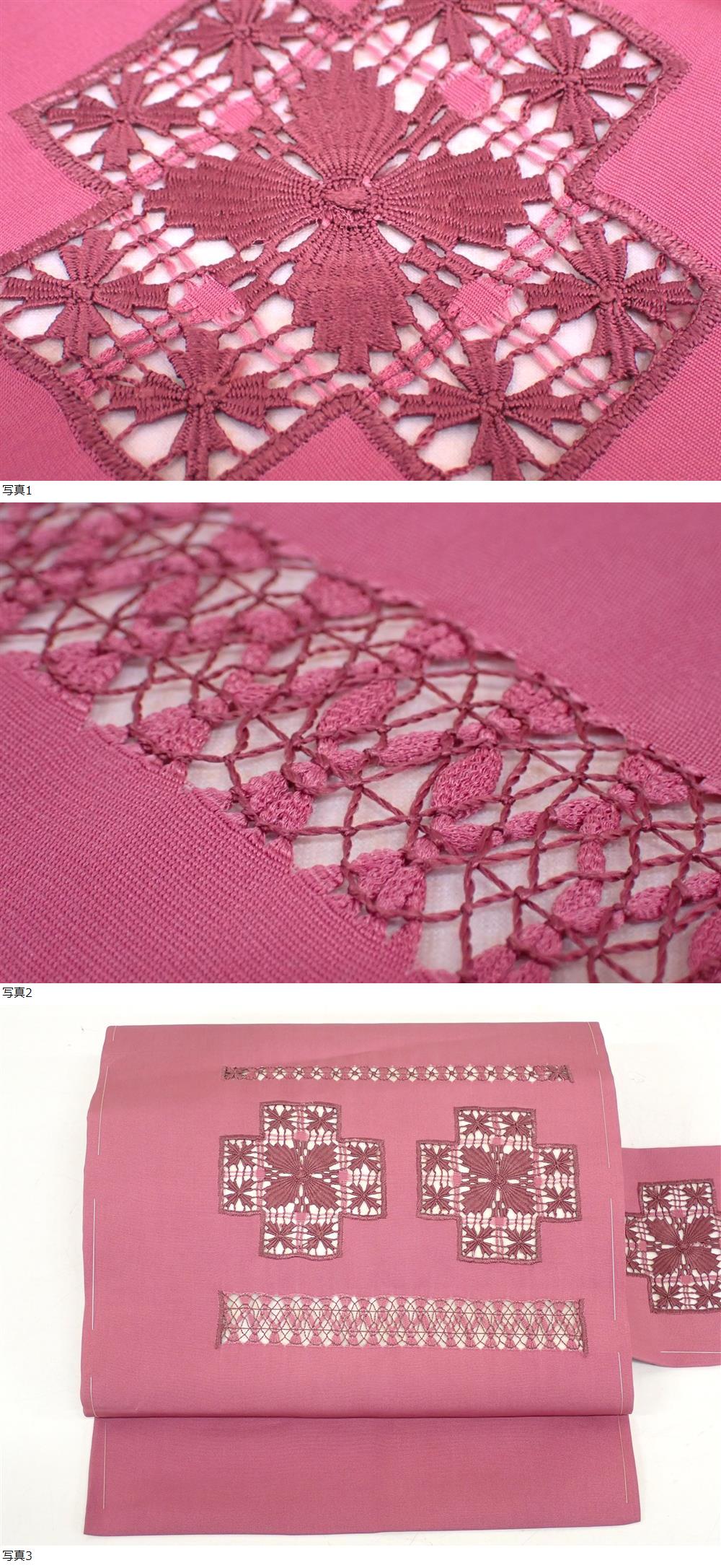 正絹 名古屋帯 ローズピンク 透かし刺繍 30.7cm×352.5cm | ||||