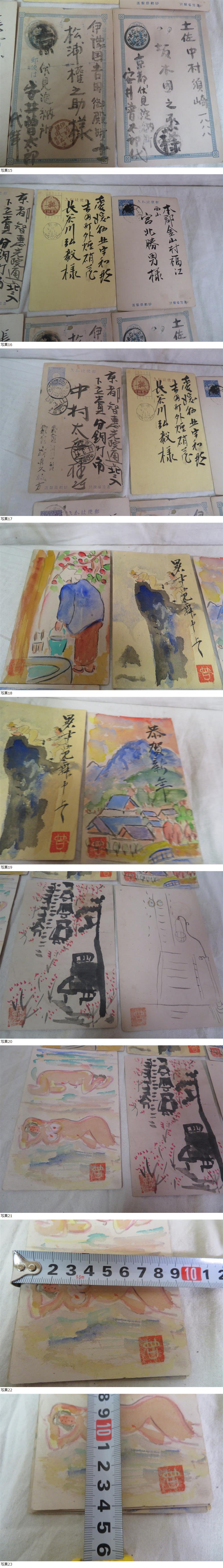 絵画、画家コレクター様のコレクション整理品です。(その他にも巨匠、著名画家の直筆の肉筆絵、エンタイアを出品しております。) 明治期から昭和の安井曽太郎の直筆に肉筆絵の絵葉書エンタイア、色々9点まとめ出しです。 現状品です。葉書、全てに安井曽太郎の落款がある本物保証です。 印刷、木版画でもなく葉書に安井曽太郎が若い明治期から昭和の葉書に直接で描かれてる非公式の貴重な肉筆絵のエンタイアです。 安井曽太郎の初期作品は渡欧に際に、それ以前の作を焼き捨てたほとんど現存していない記録があるので明治期に葉書ではありますが描かれた御品2点あるので貴重かと思われます。 ある意味では未発表の限定作品にも思えます。市場にも、めったに出回らない稀少な直筆の肉筆絵の葉書1枚でも作品として相場は見られてる御品でコレクター様、業者様にも大変貴重な豪華なまとめ出しです。 安井曽太郎 略歴 安井 曾太郎(やすい そうたろう、1888年5月17日[1] - 1955年12月14日[1])は、大正から昭和にかけての洋画家。梅原龍三郎と並び称された 1888年(明治21年)、京都市中京区で木綿問屋を営む商家の五男として生まれる。1898年(明治31年)4月商業学校(京都市立商業学校)に入学するが反対する親を説得し、1903年(明治36年)同校を中退して絵の道に進む。1904年(明治37年)聖護院洋画研究所(のち関西美術院に発展)に入所し、浅井忠、鹿子木孟郎らに師事して絵を学び始める。同時期、梅原龍三郎もここで学んでいた。 1907年(明治40年)4月、先輩画家の津田青楓が渡欧すると聞いた安井は、津田とともに渡欧することを決意した。安井は渡欧に際し、それ以前の作を焼き捨てたとのことで、安井の初期作品はほとんど現存していない。 フランスではアカデミー・ジュリアンに学んだ。特にセザンヌに傾倒し、イタリア・ルネッサンス彫刻やエル・グレコの芸術にも影響を受けた。 7年ほどのフランス滞在の間にイギリス、イタリア、スペインなどへ旅行している。1914年(大正3年)、第一次世界大戦が勃発しドイツがフランスに宣戦布告したことに加え、安井自身の健康も悪化していたため、日本へ帰国した。 翌1915年(大正4年)には第2回二科展に滞欧作44点を出品し、二科会会員にも推挙される。その後10年ほどの間は安井の画業の低迷期で健康が回復しなかったことに加えフランスと日本の風土の違いにも苦しみ、独自の画風を模索しつつある時期であった。 1930年(昭和5年)の『婦人像』あたりから安井独自の日本的油彩画の様式が確立し、梅原龍三郎とともに第二次世界大戦前後を通じて昭和期を代表する洋画家と評されており、二科会の番衆技塾でも指導した。この1930年代に石原求龍堂から木版画を発表、1931年(昭和6年)から安井曾太郎版画頒布会から全12図の『安井曾太郎版画集』を出した。 サイズが必要な物は写真にてメジャーで縦、幅、奥行き、重量等の分かる範囲で掲載をしてるので、そちらを参考にお願いします。 出来る限り写真の掲載をしております。色々な物を出品しておりますので宜しくお願い致します。 当方が出品してる物でご検討されてる方、気になる事や価格交渉等はオークション開催中に必ずご質問下さい。 基本、即決や価格交渉や配送等の交渉は出来るだけご希望に沿う様にしております。 配送のお手配は(ゆうパック)の対応予定です。 ※※※※※※※※※※※※※※※※決済について※※※※※※※※※※※※※※※※※※※ 落札者様の中での決済項目の中に該当しない支払い方法でお願いされる事はありますが落札前にご自身の支払い決済で対応してる物でお願いします。 ※※※※※※※※※※※※※※※※発送について※※※※※※※※※※※※※※※※※※※ 初めに当方が送料の確定、サイズ設定が出来ないのは梱包する事での大きさ、複数の落札をされる方で同梱依頼等がある理由からです。 複数落札される方もおり御品は落札後に梱包しており送料連絡は出来るだけ早めに送っております。また、まとめ依頼等のご連絡は早めにお願いします。 (定形外での配送は破損事故も多く、配送中に破損しても自己責任で納得されない方も多いのでご理解した方のみ定形外での配送を希望されて下さい。) (ゆうパックの1週間や10日間等の長期の時間指定や長期の局留め等の対応は出来かねますので入札前にご検討、または質問した上でお声掛け下さい。ご質問なく長期の局留めをして受け取り連絡をされない方は今後ブラックリスト登録とさせて頂きます。) (ゆうパックで長期不在で受け取りされないで郵便局に御品を長期保管される方、別の他局に変更して尚も長期保管される方、その際に返送になる事は二度手間になり迷惑なのでご自身で時間指定をした上で取引時に必ずご連絡下さい。) 1:当方は郵便局が定めるサイズで配送としております。同日終了の御品で複数落札の方は定形外、レターパック、ゆうパックの最大サイズ以内に収まる物であれば全て同梱の対応としておりますので、複