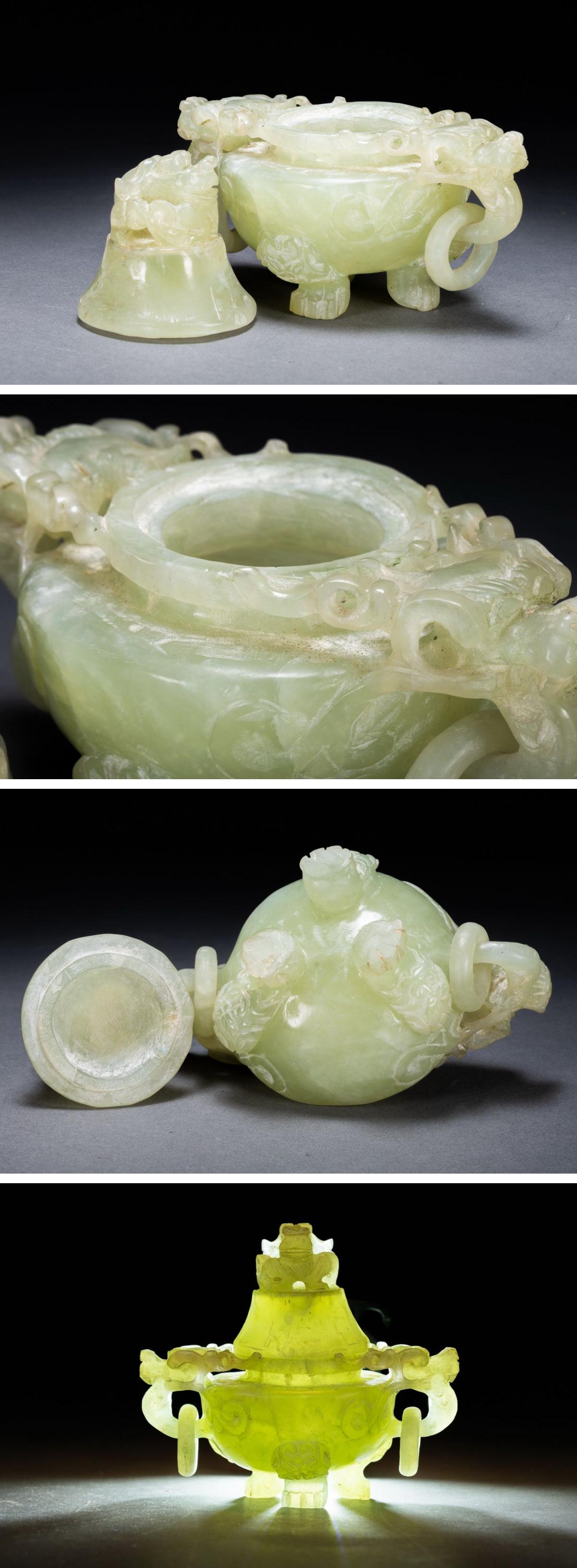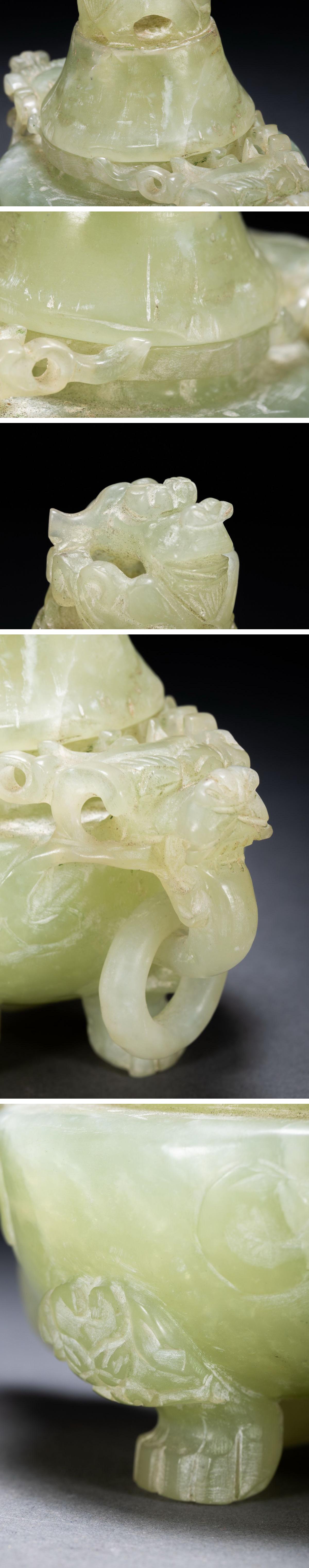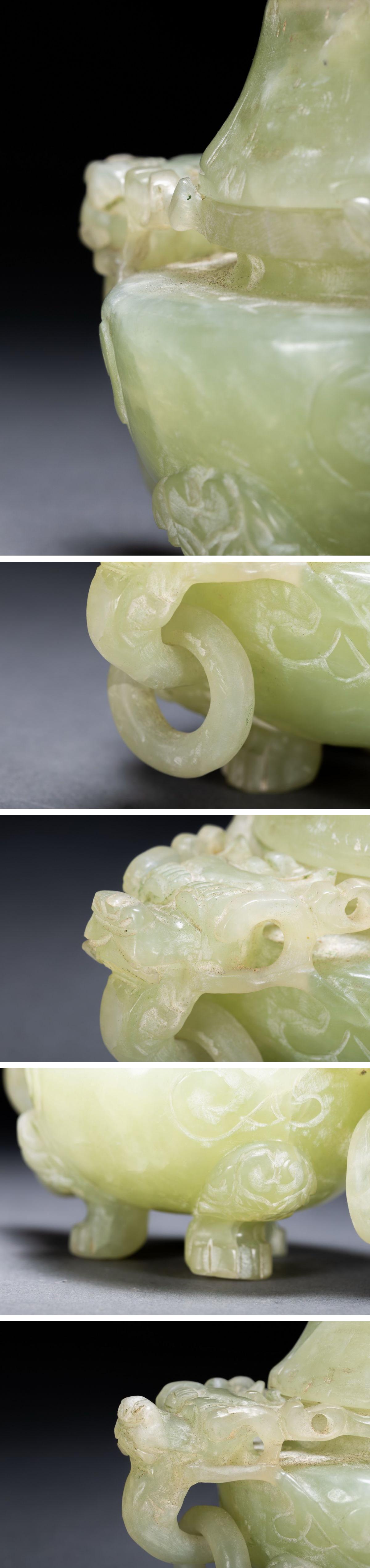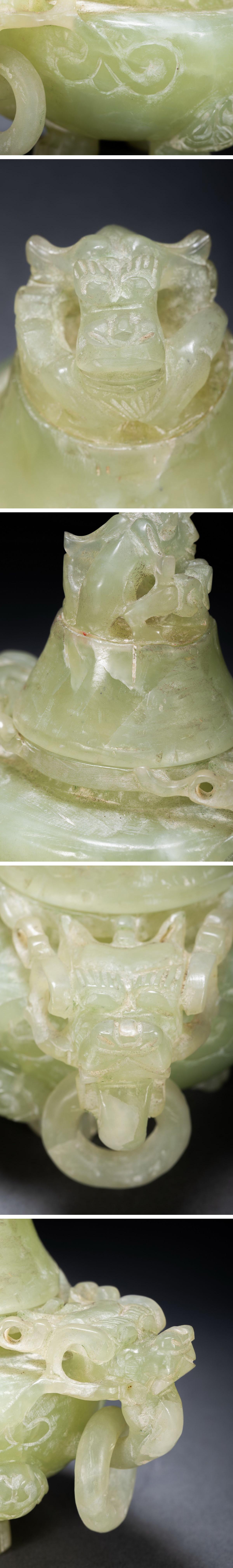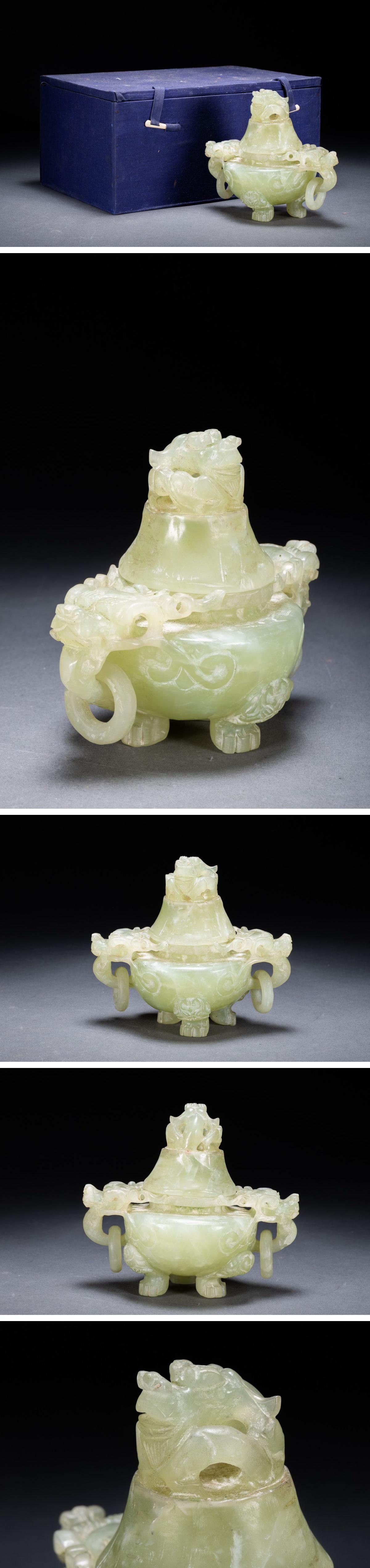 【雲錦】1円から 時代物 天然碧玉 双龍耳三足香爐 材質保証 古美術 骨董品8L1-115S1