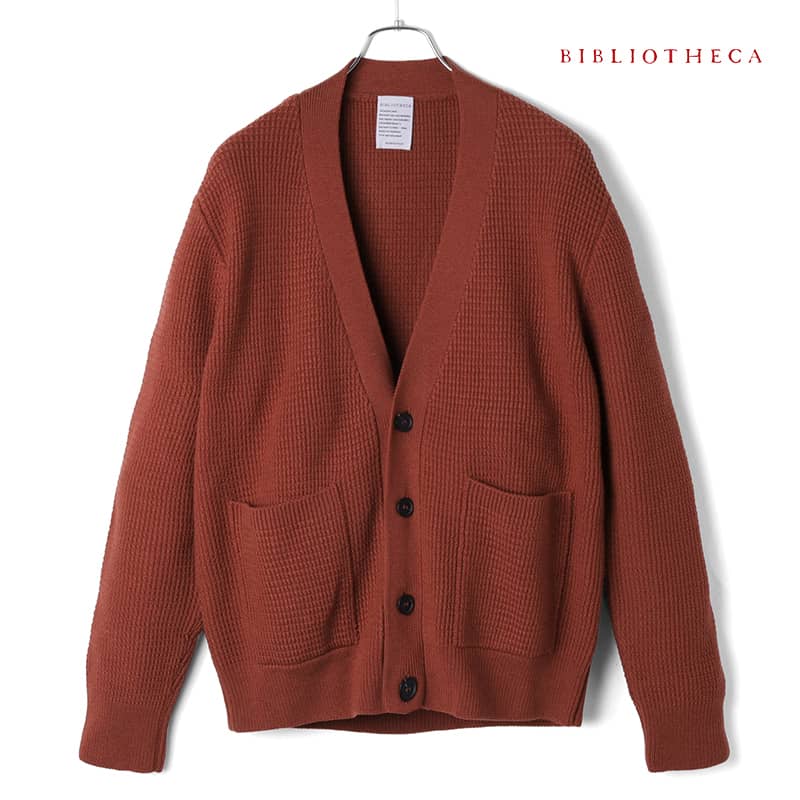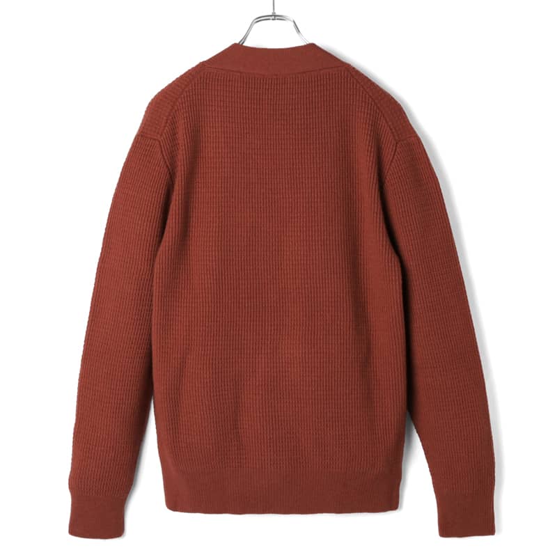 メリノウールワッフル編みローゲージVネックニットカーディガン