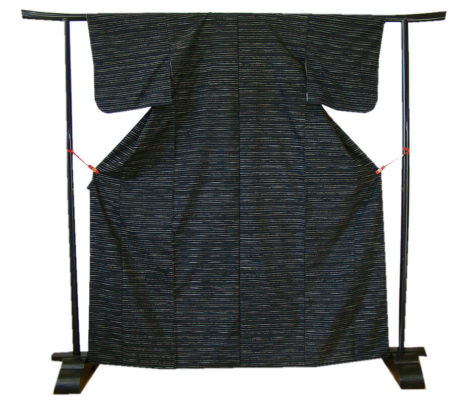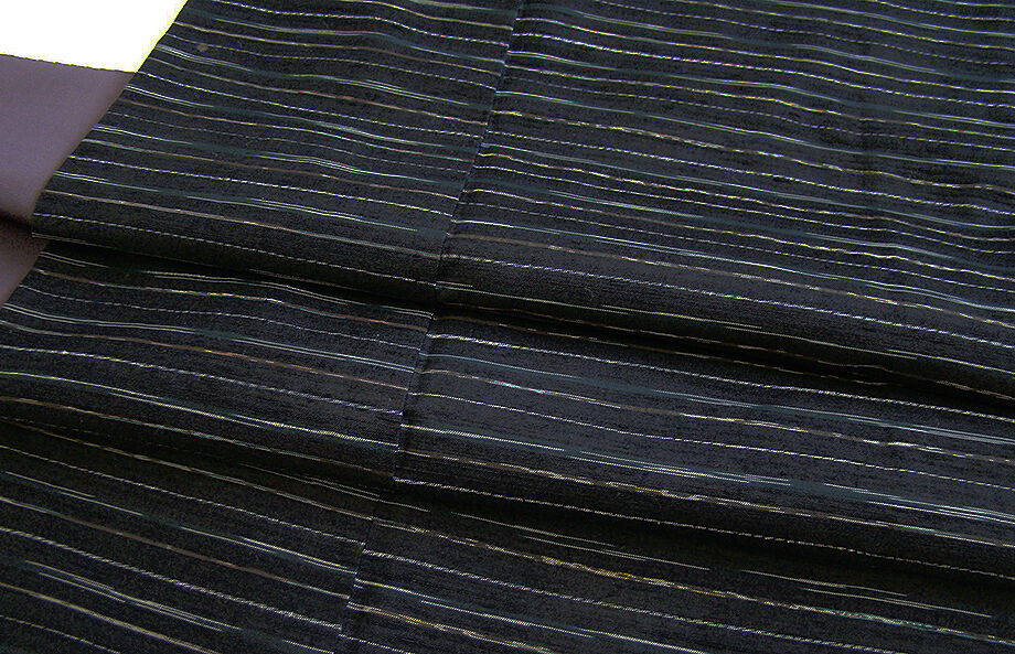 ★超大特価★S寸!帯や小物次第で様々な表情をお愉しみ頂ける逸品! 暮らしに重宝するお洒落な黒地に横断柄の真綿紬の紬着尺(正絹) L134★ | |
