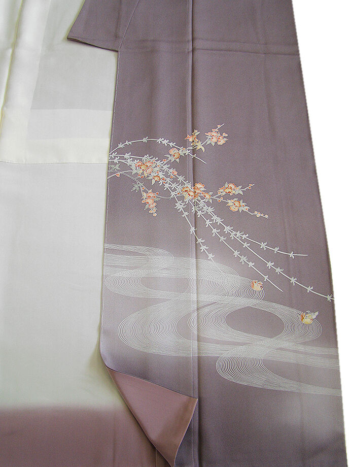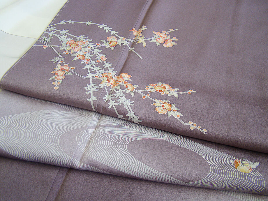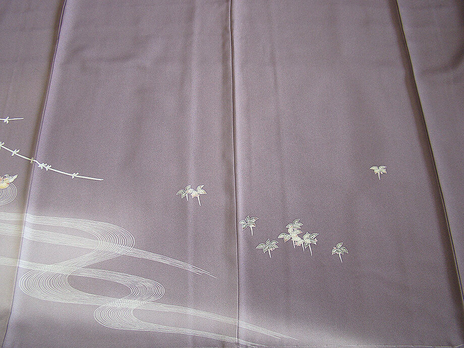 | 商品説明 | こちらのお品は「袷」でございますので、10月~5月までお召頂ければと思います。 しなやかで柔らかな滑らかな手触りのさらりとした着心地良い極上一越地の生地、 葡萄鼠色地に流水や水鳥柄の本加工染、 八掛は薄葡萄色(正絹)、幅広い年代の方にお召頂けます。 |