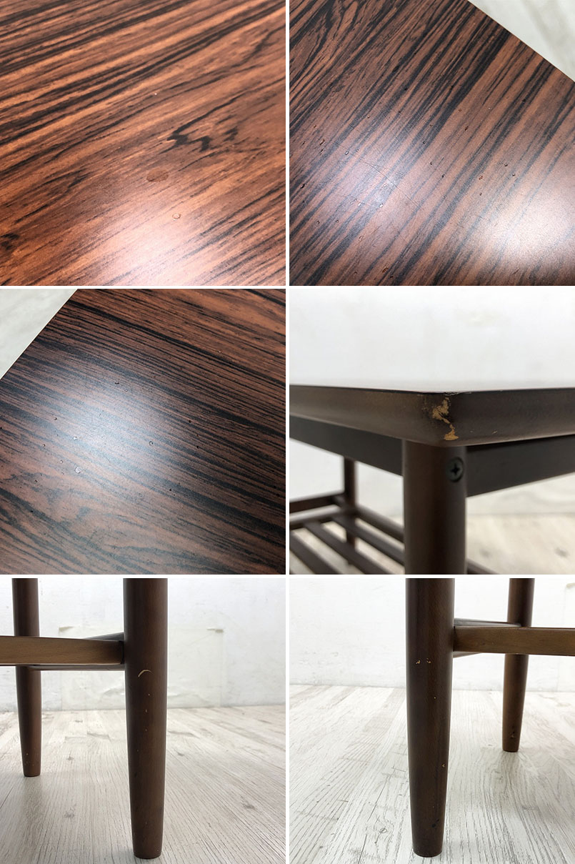 こちらはkarimoku カリモク家具 センターテーブル ダークウォールナット色塗装 TS3020RDです。 中古品です。 Kチェアやロビーチェアとも相性抜群のセンターテーブル。 レトロな雰囲気でありながら新しい、普遍的なデザインがお部屋をぐっとおしゃれに引き締めてくれます。 天板は傷や熱に強く、お手入れもしやすいメラミン化粧板仕様で安心してご使用頂けます。 ![]() 天板下に棚板付きで、リモコンやティッシュケースなど、 テーブルの上に出しておきたくないモノをスッキリと整理できます。 棚板は桟になっていますので、床が見え、圧迫感がありません。 この機会にぜひいかがでしょうか。 【karimoku(カリモク)】 昭和22年(1947年)創業の日本を代表する家具のトップメーカーです。 「100歳の木を使うなら、その年輪にふさわしい家具をつくりたい」 を合言葉とし、木の魅力を最大限に生かした家具作りを徹底し、数多くの上質なインテリアを取り扱っています。 【コンディションについて】 多少の使用感や小傷があります。 詳細につきましては下記画像も合わせてご参照ください。 ![]() 再良市場の他のお品物はこちらから!