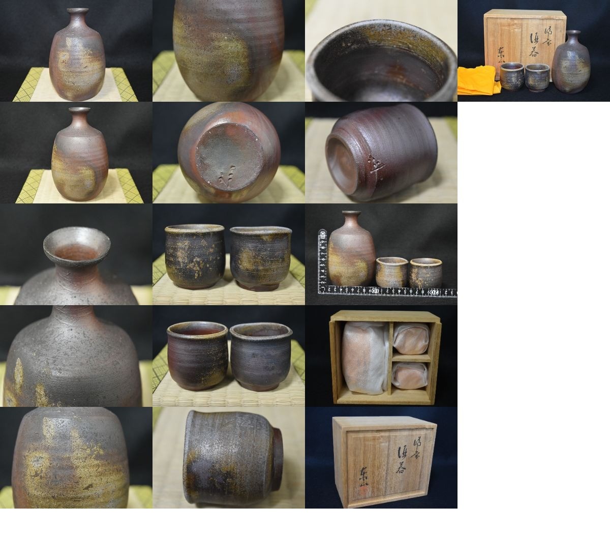 【光成】備前焼「泰山窯・灰被り・酒器一式」共箱・未使用