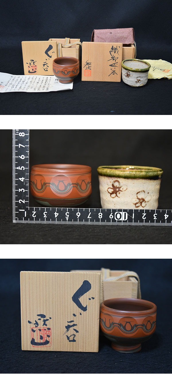 【光成】ぐいみ2点「常滑・谷川黙山作・練込ぐいみ」「美濃織部・加藤和次作・ぐいみ」共箱・未使用