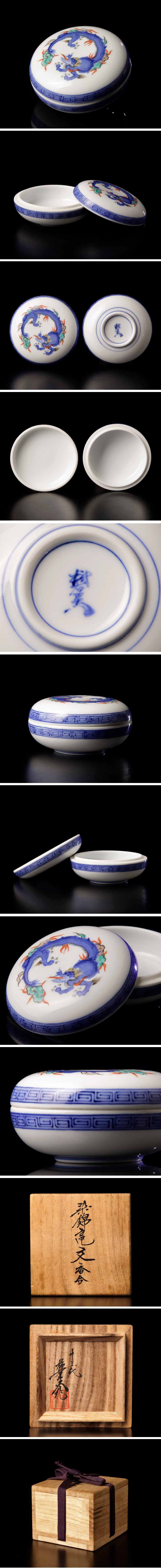| 【古美味】人間国宝 十三代酒井田柿右衛門作 染錦竜文香合 茶道具 保証品 |