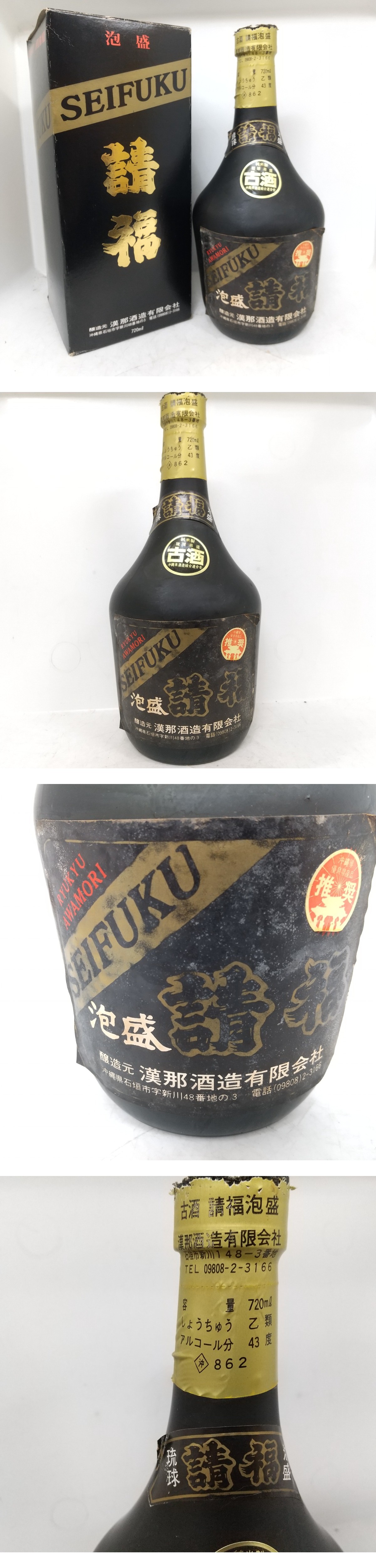 | ※必ず最後までお読みください。 Please be sure to read to the end. 一定要到最后※ | 商品概要 | -95数あるオークションの中からこちらの商品をご覧頂きまして誠にありがとうございます! ※商品説明と注意事項を必ず全てお読み頂いた後にご入札下さい※ 引き続き 安心できる気持ちの良いお取引を心掛けてまいりますのでどうぞ 宜しくお願い致します! 色んなジャンルの商品を多数出品しておりますので、こちらをクリックしてご覧ください!! 東京都公安委員会 古物商許可 第307781505147号 ◎ ◎未開栓/古酒◎琉球泡盛 請福 古酒 720ml 43度 箱入り 漢那酒造 激レア 即発送 ※最下部にも写真掲載中なので必ずご覧下さい。 請福酒造の前身である一九六六年創業の漢那酒造有限会社の泡盛です。 泡盛古酒の芳醇な薫りにくわえ、カカオの濃厚な香りに、ほのかにマスカットの爽やかな香り漂い、それはまるで上質なバーボンを彷彿させます。 香りを楽しみながら古酒が醸し出す旨さにまろやかさ、奥深さを楽しみたい泡盛ですね。 50年以上の古酒が持つ本来の味わいをお好みの飲み方でお楽しみ下さい。 【種 別】泡盛 【商品名】琉球泡盛 請福 【容 量】720ml 【度 数】43度 【原産国】石垣島・沖縄 【状 態】未開栓品です。必ず写真をご確認ください。 【詳細・備考】当方譲り受けたお品になります。 古酒になりますので自宅保管で経年の保存による、量減りや風味の変化等は保証しかねますのでご了承ください。 又、当方でしっかり梱包しますが、未開栓品でも稀に発送後に液漏れなどがある場合がございますが、 当方では保証できかねますのでご了承ください。 経年保管による多少の擦れや汚れ等はご了承下さい お酒になりますので、未成年の方は入札できません。 落札後、生年月日のご連絡をお願い致します 状態判断には個人差があることを予めご了承の上 写真にてご確認ご判断お願い致します。 写真に写っている物が全てになります。 尚 デジカメの画像は鮮やかになりますので、 実際のカラーとモニターを通じた色彩は異なりますのでお気をつけ下さい。 よくご確認、ご了承の上、ご入札お願い致します。 新品に近いものをご希望の方や神経質な方のご入札はお控え下さい。 ご入札頂いた時点で商品にご納得して頂いたと当方で判断させて頂きます。 【ノークレームノーリターンでお願い致します】 【当方のオークションでは いろんなジャンルで多数出品しております】 是非ご覧ください☆ ![]() ▶入札の取り消しは受け付けておりません。 落札後の質問やキャンセルは受け付けておりません。 オークション終了間際や質問内容によっては返答できない場合がございます。 ▶佐川急便・西濃運輸以外の配送は対応できません。 ジャンク商品に関してはいかなる場合も返品返金の対応はできかねます。 落札後のサイズ違いやイメージ違い等のキャンセル、クレーム、返品等はお受けできませんので予めご了承ください。 ご入札の方につきまして、当方にて評価が著しく悪いと判断した場合は、トラブル防止の観点からご入札を取り消させていただく場合がございますので予めご了承ください。 新規IDの方や、いたずら入札と判断した場合、入札削除させていただく場合がございますので、 新規の方は質問欄にて購入意思を示してからのご入札をお願い致します。 取り置きは可能ですが物や金額によってはすぐに決済をお願いする場合がございます。 当方大量の商品を管理している為、複数落札の同梱ご希望の方は、まとめて取引の依頼を必ず使ってください。 ◆連絡方法◆ ▶当方連絡事項は全て取引ナビを使用しております。 ご連絡先、ご要望等は必ず取引ナビにご入力お願い致します。 ⇩⇩下記の注意事項を必ずお読み下さい。⇩⇩ |