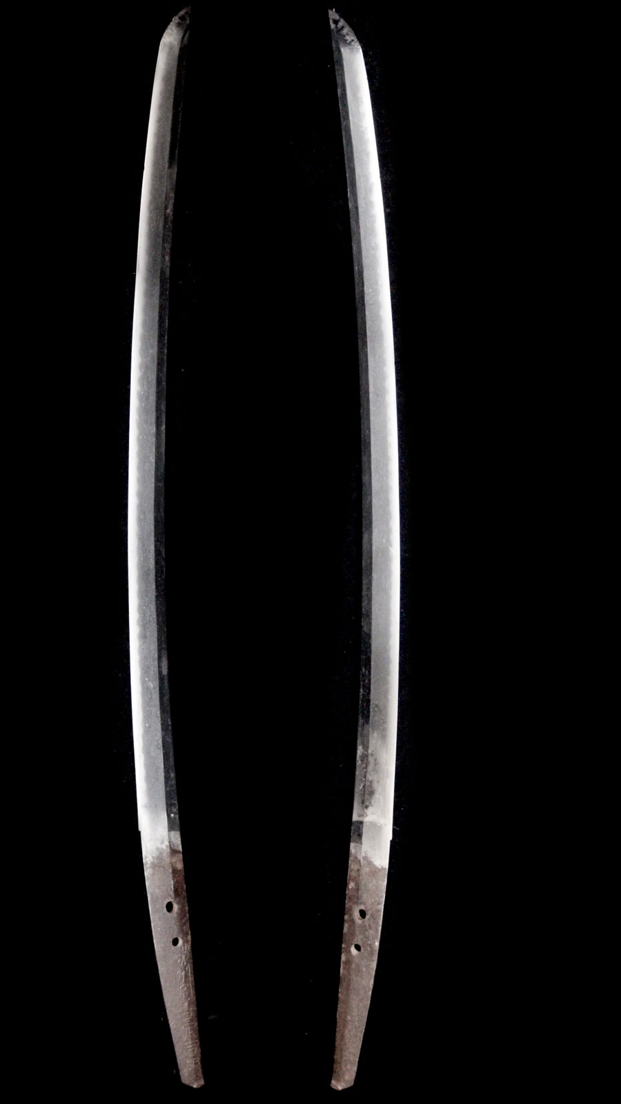 刀身長:約53cm 反り:約0.8cm 目くぎ穴:2個 元幅:約28.9mm 元重:約6.7mm 先幅:約18.8mm 先重:約4.4mm 刀身重:約504g 棟:庵棟 ハバキ: |
