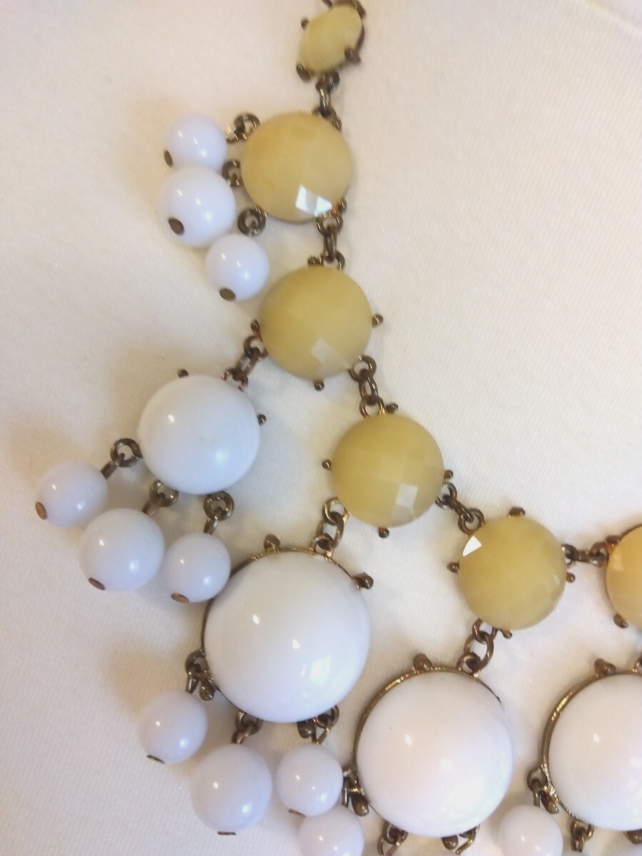 立体感のある丸いモチーフに優しいイエローとホワイトのコントラストがきれいなネックレスです。| 出价者 | 信用 | 价格 | 时间 |