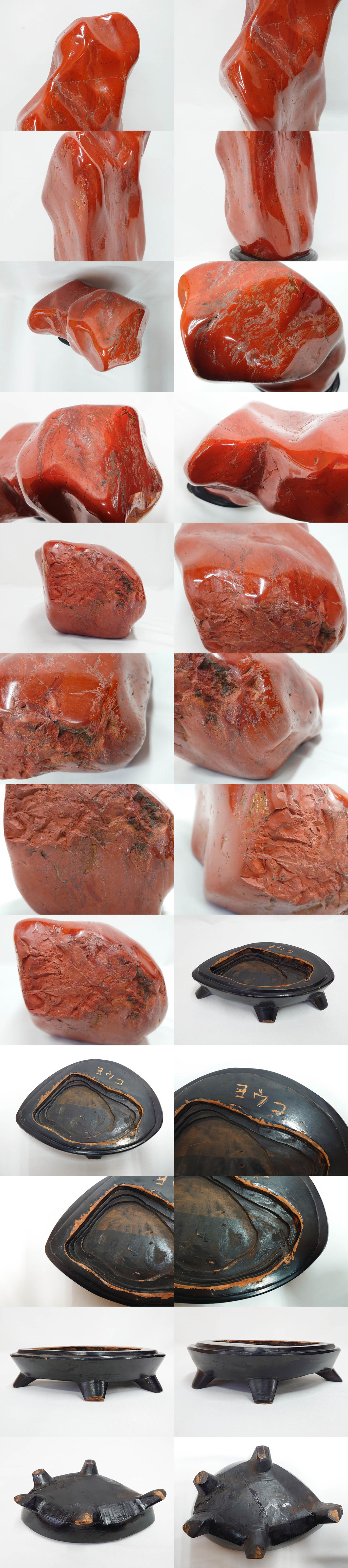 佐渡赤玉石 自然石 天然石 水石 重さ約19.48kg 素材そのものの色や形を楽しめる鑑賞石(台座付き、置物、ディスプレイ)(R-081301)