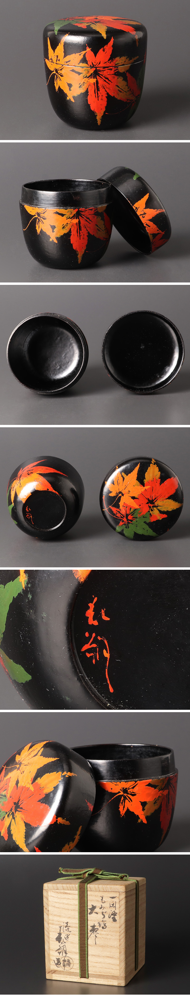 | 【古美味】鈴木表朔造 一閑塗もみじ絵 大棗 茶道具 保証品 |