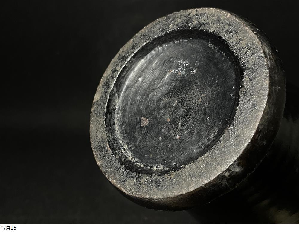 | 朝鮮美術 李朝 黒高麗花瓶 時代 朝鮮古陶磁 黒釉 箱付 高さ約26cm |