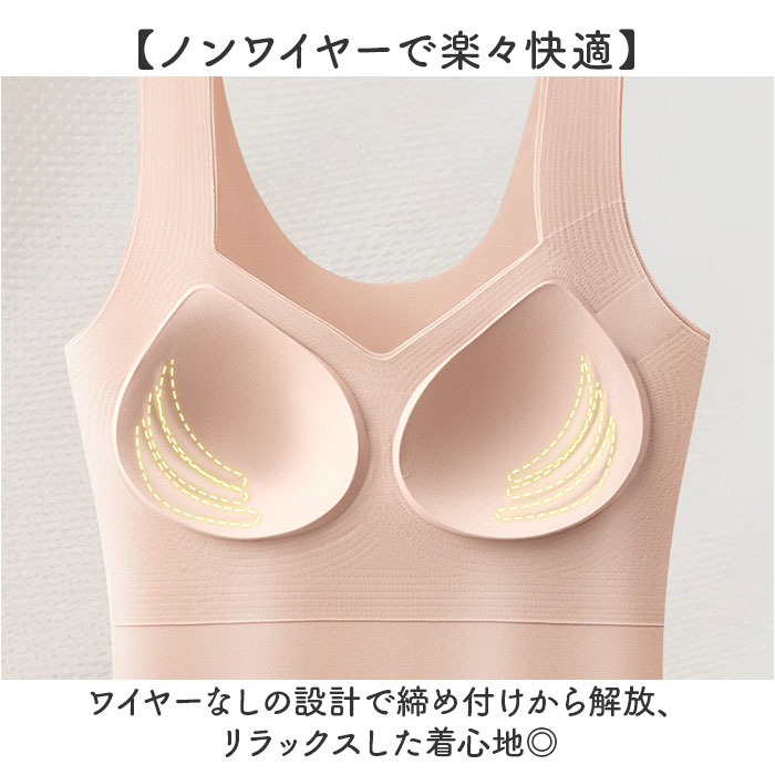 | 商品説明 | ・・【締め付けゼロの快適ブラ】 ・ノンワイヤー&アンダーゴムなし、ストレスフリーな着心地のブラトップ。 ・【背中に段差が出ない設計】 ・アンダーゴムなしだから背中がスッキリ、服の上にも響かない〇 ・【ノンワイヤーで楽々快適】 ・ワイヤーなしの設計で締め付けから解放、リラックスした着心地◎ ・【縫い目ほぼゼロの仕上がり】 ・シームレス加工でチクチクしない、肌あたりがやさしくデリケート肌でも安心♪ ・【伸縮性抜群の素材感】 ・体にフィットしながらも動きやすい快適な仕様! ・【軽やかな着用感を実現】 ・長時間着けていても疲れにくい、毎日使いたくなる心地よいつけ心地の一枚。 |