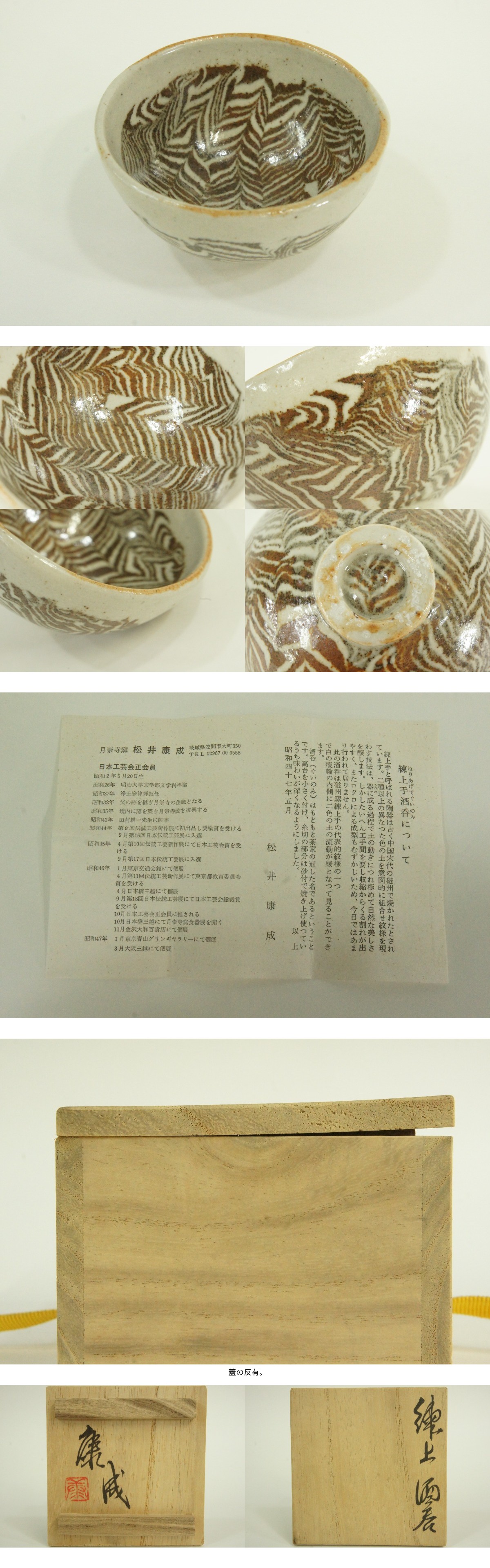 ●笠間焼 人間国宝 松井康成 練上酒呑 練上手 酒器 ぐいのみ 状態良好 共箱