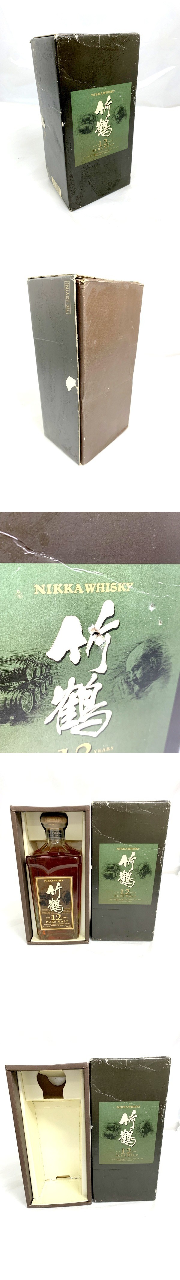 銘柄【ウイスキー ニッカ 竹鶴 12年 ピュアモルト NIKKA TAKETSURU PURE MALT 660ml 40% 未開栓 箱付】 内容量/660ml 度数/40% 状態/箱シワ、破損等全体劣化大 ボトル全体小傷有 付属品/箱