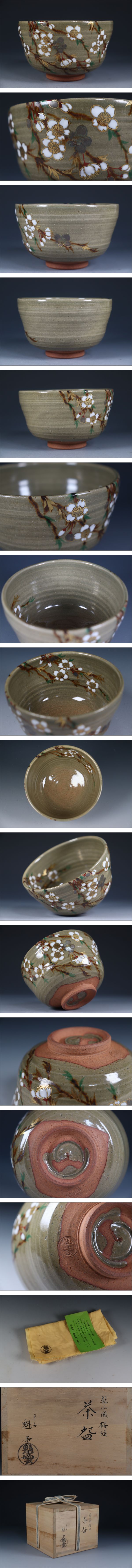 | 商品説明 | 商品名:蔵出し品 京焼 伊藤魁雲 乾山風桜絵 茶碗 付属品:四方桟共箱、陶歴、共布あり。 サイズ:高さ7,1cm、口径11,9cm、高台4,8cm。 状態:無傷になります。 |