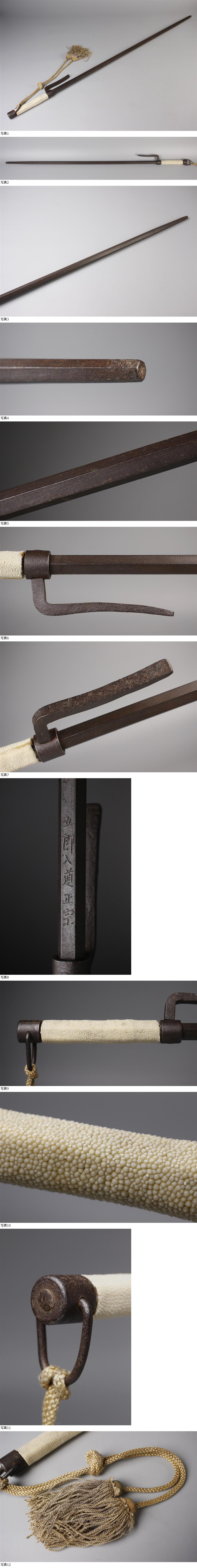 26013013* * * 商品詳細 * * * ここでしか出逢うことのできない唯一の美をご紹介させて頂きます。 端正な装飾が美しい五郎入道正宗銘 鉄地 大十手のご紹介です。 全長は89㎝と迫力があり 美しい鮫皮巻柄と古鉄の肌地は味わい深く、 武具としての迫力と芸術性を兼ね備えた大十手となっております。 しっかりとした重量感も心地よく、重厚な鉄肌も魅力的な逸品です。 この機会に是非お求めください。 ■サイズ/全長89cm×幅4.5cm 重量:1274g ■状態/スレ、小傷、錆び、ほつれがございます。 ※写真にてご確認、ご了承の上ご入札下さい。 !かんたん決済 * * * 発送詳細 * * * 入金確認後3営業日以内に発送致します。 ※直接引き取りも可能です。 60~160サイズにつきましては 佐川急便、ゆうパックのどちらかで発送いたします。 ゆうパック発送の場合、弊社の発送日から追跡サービスに問合せ番号が反映されるまで 約1日ほどお時間がかかりますのでご了承下さい。 * * * 注意事項 * * * 運送中の破損があった場合は速やかに当社までご連絡下さい。 保険を利用するのに受取連絡後に運送会社による現場での破損状況確認が必要となります。 勝手に返送されますと保険の適用外となりますのでご注意ください。 * * * * * * お問い合わせ:082-236-8669 |