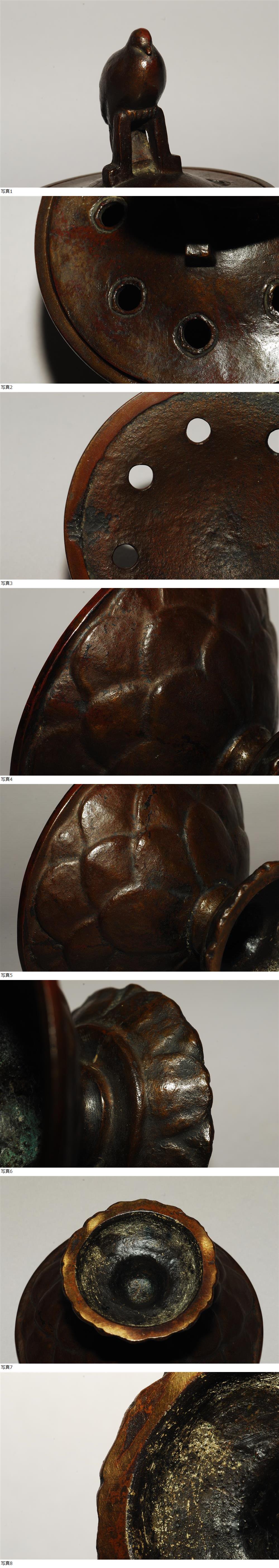 | 【商品詳細】 藤井浩祐 造 銅 香炉の出品となります。 [サイズ] 高さ(蓋上まで):13.8cm 口径:11.3cm 底部直径:6.5cm 重さ:765g ※素人の採寸・計量ですので若干の誤差は御了承下さい。 内部に溶けたロウソクが付着しています。 それ以外には目立った傷もなく綺麗な状態ですが、 使用に伴う汚れ・スレ傷が見られます。 詳細な状態は画像にてご確認ください。 【送料】 ヤマト運輸60サイズでの配送を予定しています。 送料に関しましては、下記の料金表を参照して下さい。