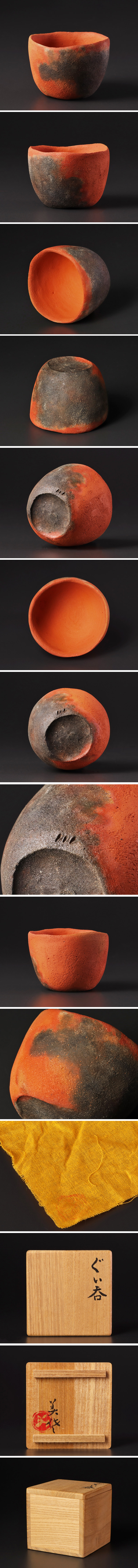 土の温もりと手に馴染むやわらかな質感が心地よいぐい呑みです。朱の発色と焼きの色が混じり合い、ひとつとして同じもののない味わい深さがあります。 ★商品は直木美佐の作品である事を保証致します。 |