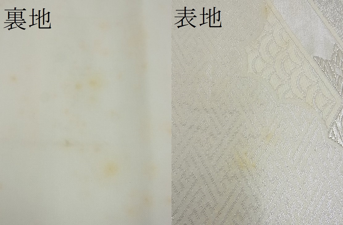 | 【正絹】 状態は接写画像のように 裏地・表地所々に薄い汚れがございます。 大変上質な逸品になりますので、 ぜひお手入れをされてお召しになられてはいかがでしょうか。 お安く出品致しますので、是非この機会にいかがでしょうか? ※若干太鼓にたたみシワがございます。