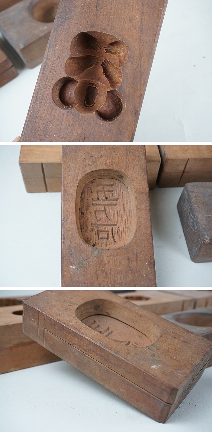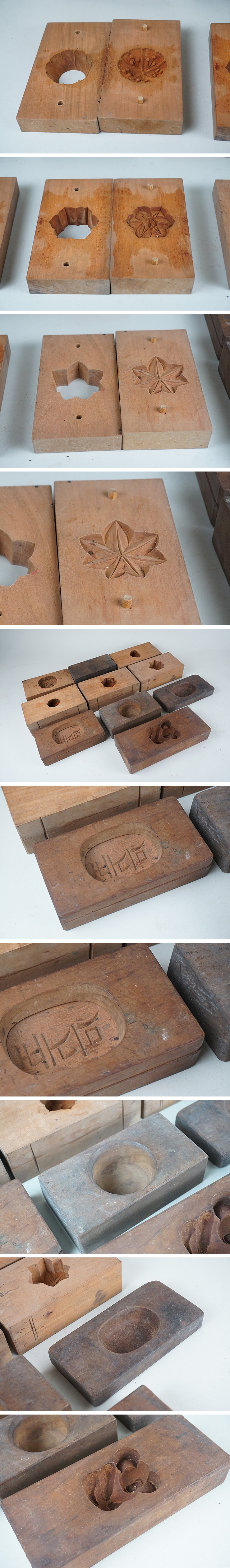 | E-059■古い菓子型 元菓子店 木造り菓子型 押し型 苗花菊花 | ||