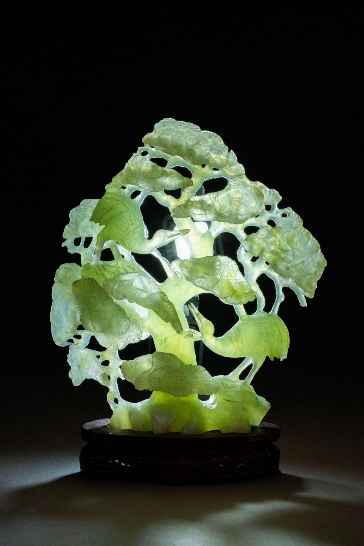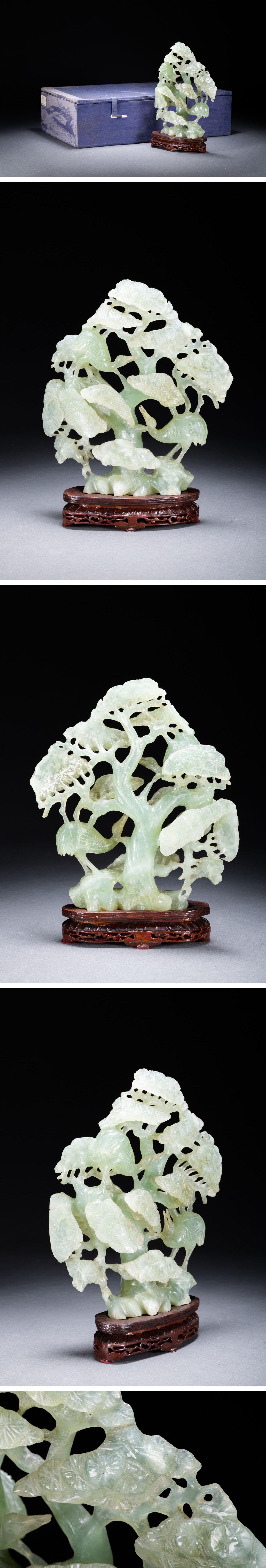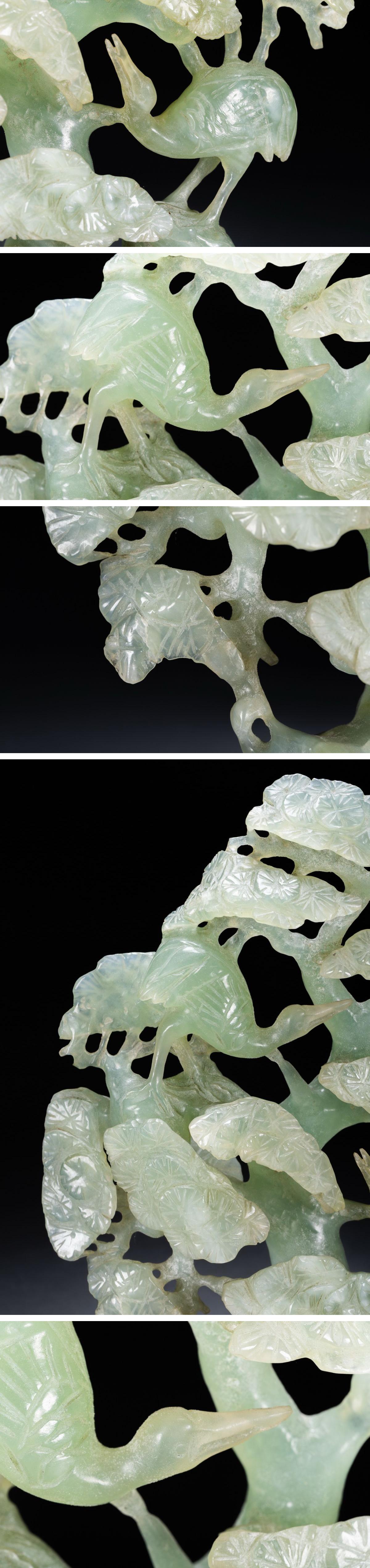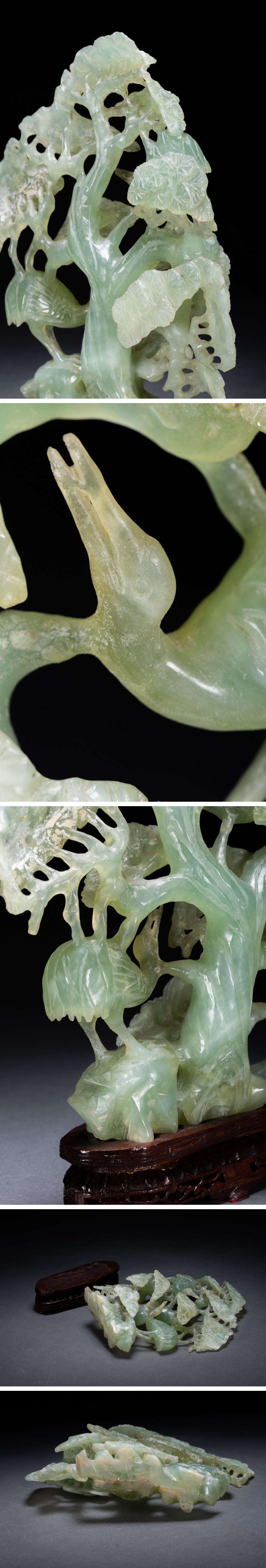 【雲錦】1円から 時代物 天然碧玉 透かし彫り 花鳥紋案頭置物 材質保証 古美術 骨董品8L1-122S1