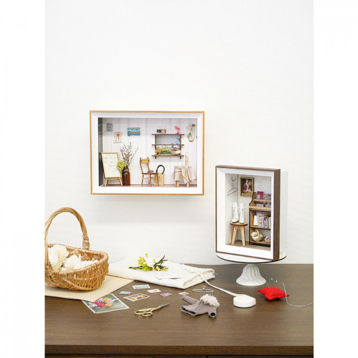 | 箱の空間をアレンジしてディスプレイできるフレームと紙BOXのセットです。 置く場合も壁に掛ける場合も傾かないようになっているのでフィギュアなどを飾るのに適しています。 |