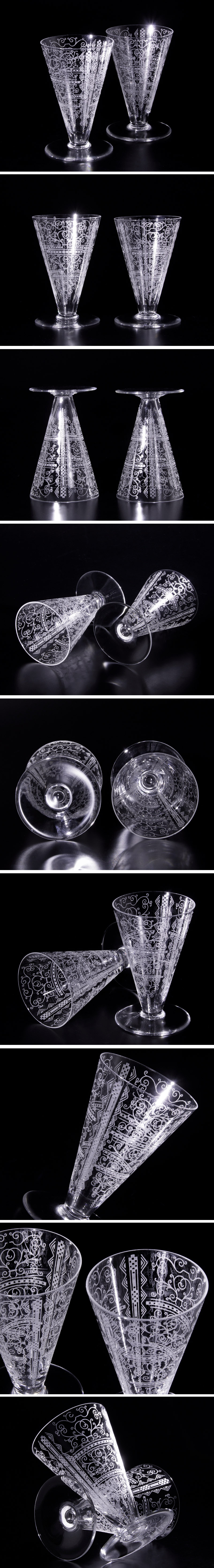 | 【古美味】オールドバカラ リド (Lido 1930-1950) ワイングラス 2客 茶道具 保証品 |