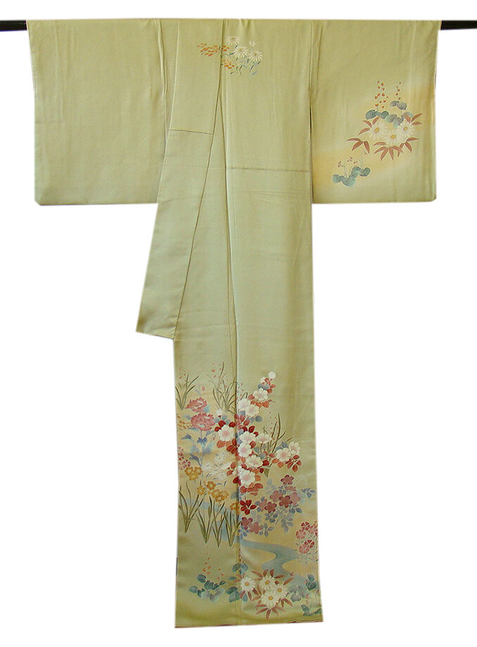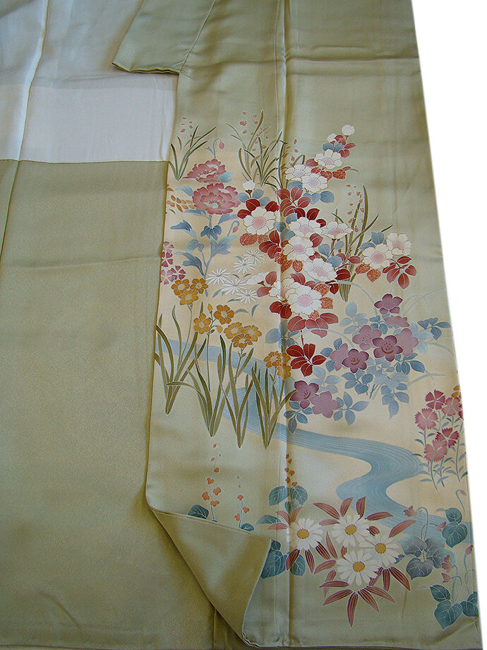 | ちょっと一言 | 着心地良い上質な極上ちりめん地を纏う、本加工染の楚々とした華やかな着物姿を謳う訪問着です。 帯や小物次第で様々な表情をお愉しみ頂ける逸品です。 どんなお客様にも好感度大の長く着られる一枚を大切に纏う醍醐味をご堪能下さいませ。 |