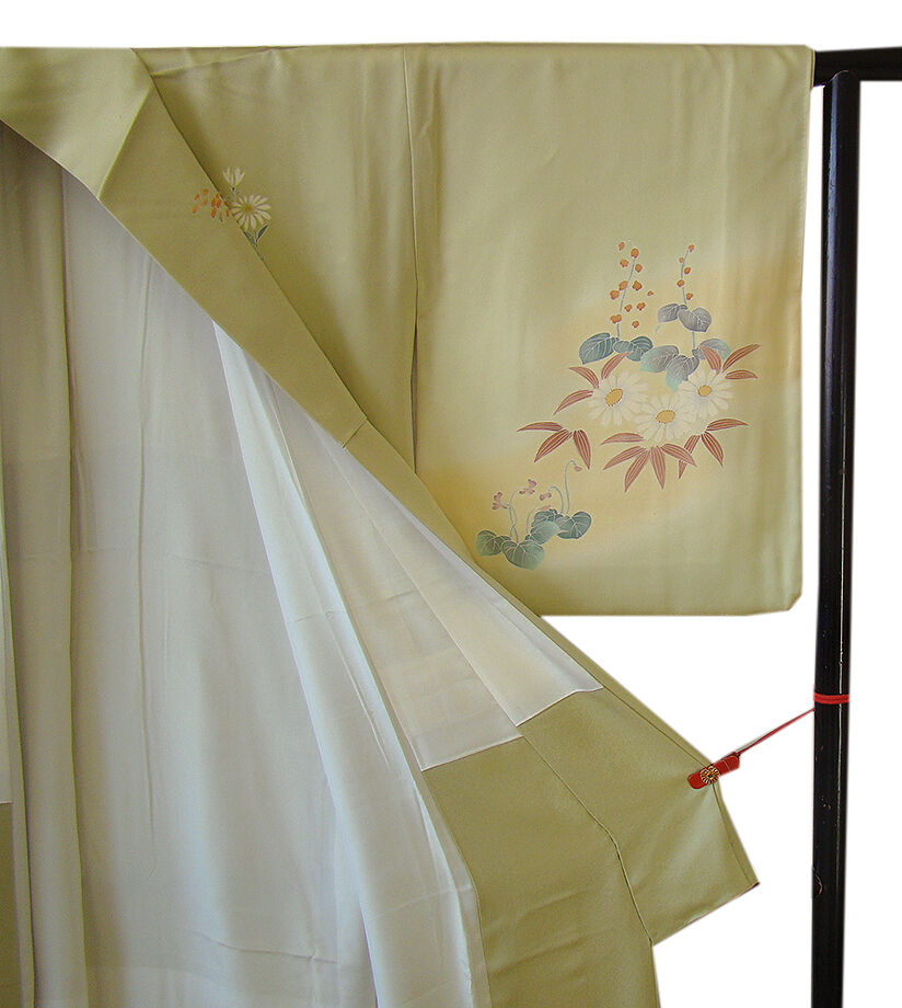 | 商品説明 | こちらのお品は「袷」ですので10月から5月までお召頂ければと思います。 とてもしなやかで柔らかな手触りの着心地良い重めの上質な極上倫子地の生地、 渋い枯草色地にクリーム色ぼかしに花草、流水柄の本加工染に金彩加工仕立て、 気品に満ち溢れた彩りが正統派のお着物として一枚は欲しい逸品の素敵なお着物です。 八掛は共布に柄入り(正絹)、幅広い年代の方にお召頂けます。 |