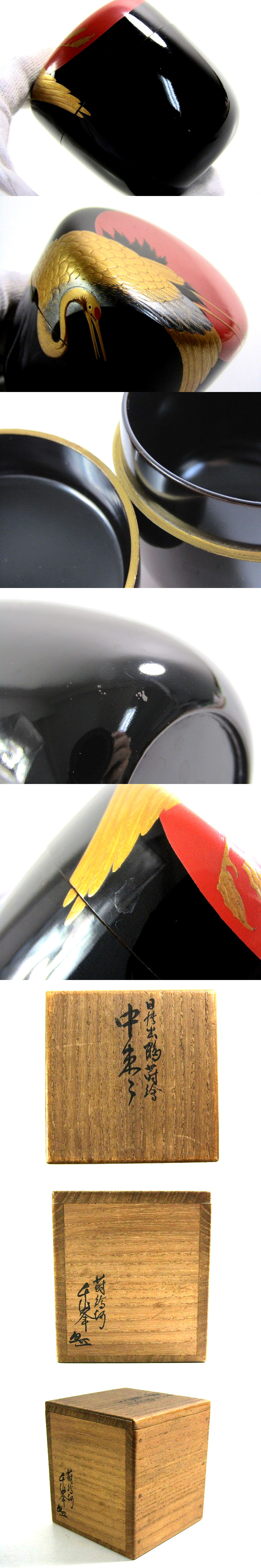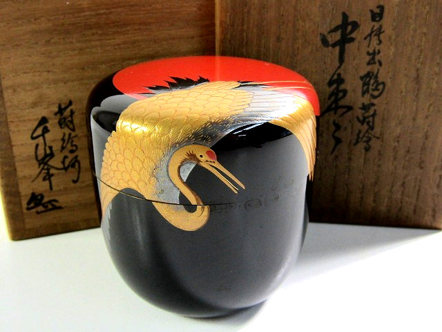 蒔絵師 千峯 作 鶴蒔絵 中棗 共箱【説明欄に詳細写真有り】の出品です。