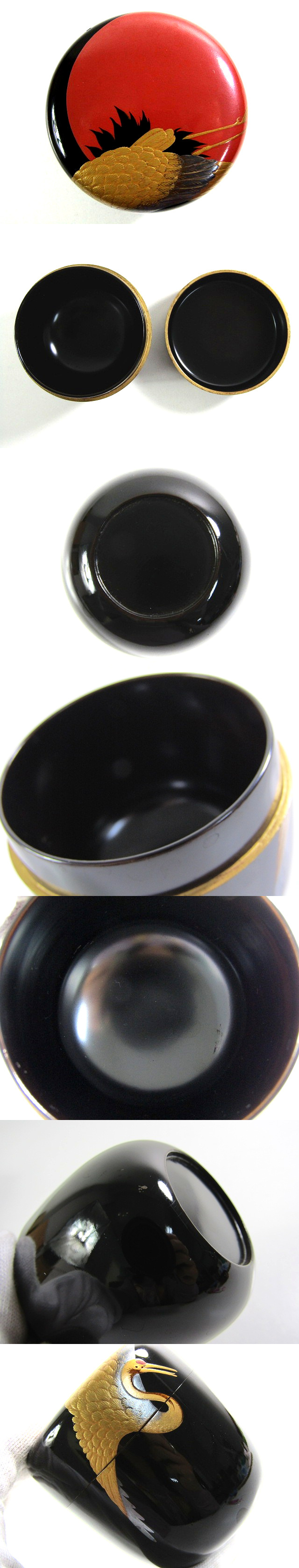 P005 蒔絵師 千峯 作 鶴蒔絵 中棗 共箱【説明欄に詳細写真有り】 [浏览原始页面]