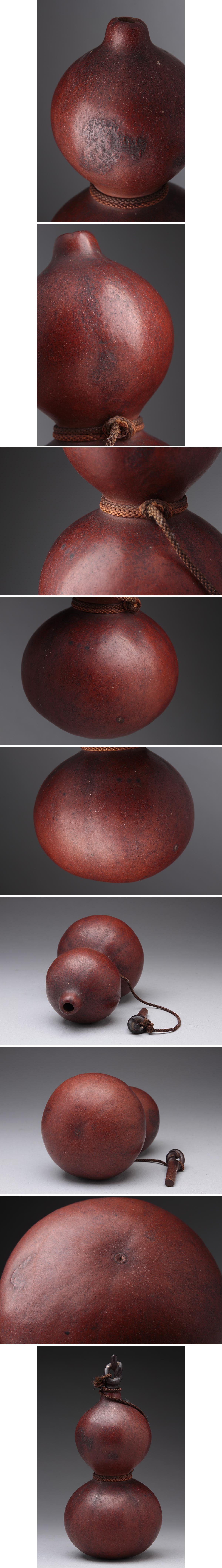 | ◆ 時代 古瓢箪 高19.2cm 唐木蓋付・老葫芦・煎茶飾り・ひょうたん・水筒・水瓶・酒瓶 煎茶道具 縁起物 提げ物 古美術 ◆