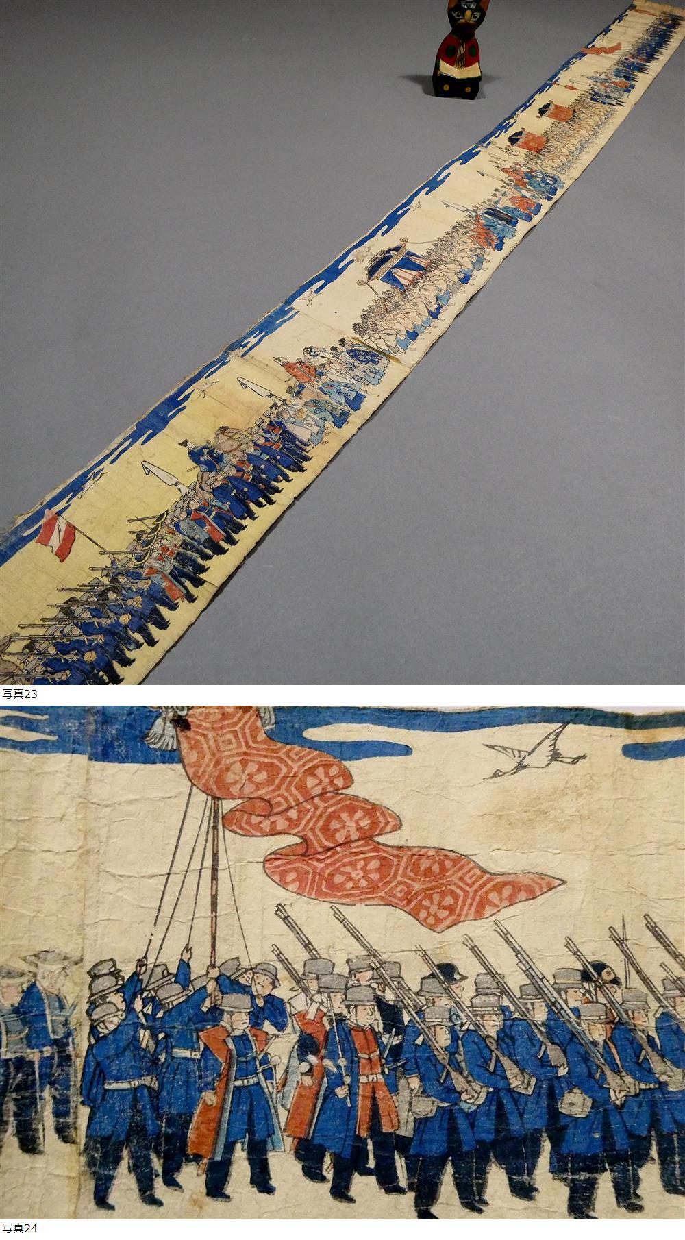 ■ 長さ 140㎝!越え 歌川芳藤 明治初め 木版浮世絵 東京奠都の図 明治帝、京都からいよいよ東京へ ■