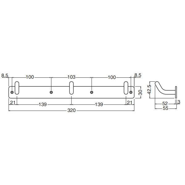 | どこでも活躍する、三連タイプの丸棒フックです。 |