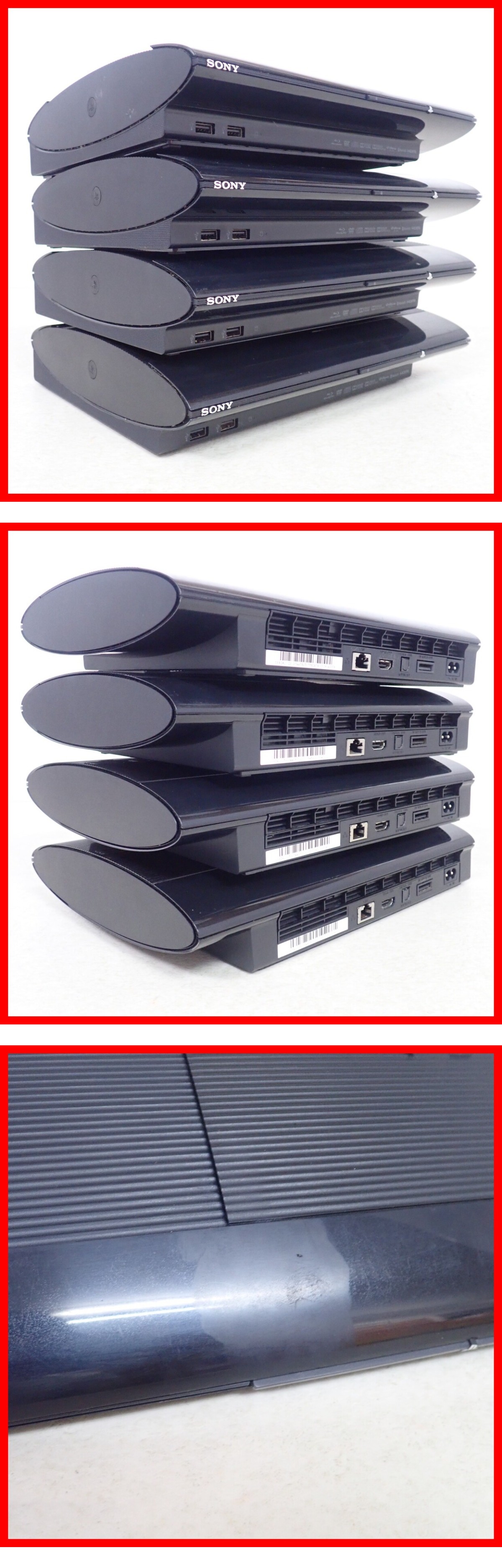 | 動作品 PS3 プレステ3 本体のみ CECH-4000B チャコール・ブラック まとめて4台セット PlayStation3 SONY ソニー ※本体のみの出品になります。付属品はございません。※ ■PS3ゲームディスクの読み込み確認を行いました。 ■上記以上の詳細な動作確認は行っておりません。 ■HDDがすべて欠品しております。 ■本体にスレ、キズ、汚れ、黄ばみ、ヤケがあります。 ■本体底面のゴム足が欠品しているものが含まれます。 ■封印シールがはがれているものが含まれます。 ■インターネットへの接続は未チェックです。 ■上記以上の詳細なチェックは行っておりません。 ■清掃は軽く拭く程度のみ行いました。予めご了承ください。 ■動作チェック・撮影に使用した以下のものは付属しません。 ・モニター ・ゲームソフト ・コントローラー ・ケーブル類 ■商品の状態・セット内容につきましては写真をご確認ください。 ■一部を除いての発送は行っておりません。 ■写真のものが全てです。付属物の有無や状態については写真からご判断ください。 ■付属物については細かいチェックはしておりません。万が一、欠品があったり余計な物が入っていたとしてもご了承ください。 ■商品によりますが、発売されてから10年以上経過している中古品であることをご理解いただいた上でご入札をお願いいたします。なお、新品や美品、そのほか特記事項がある場合は別途明記します。 ■ご落札いただいた本体及び箱や取説、付属品、梱包材などは1つでも廃棄や破損をしないようにお願いいたします。 ■商品のご落札後、廃棄や破損をした場合、あるいは【修理や整備、カスタム、付属物の抜き取りやページの抜き取り/書込み等、ご落札者様の目的に応じて何らかの手が加えられた商品】に関しましては、問題があった場合でも対応や返金などの対処ができませんのでご注意ください。 |