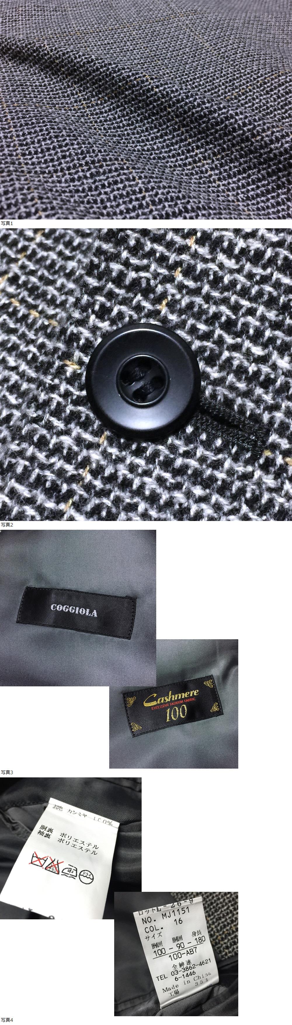 | 【ブランド】 COGGIOLA コッジョラ 大丸をはじめとする大手百貨店でセレクトされている、大人のための高級イタリアン・カジュアルブランド。レディース部門では、ハイキャリアなレディースブランド「LORITTI」を展開です。 【デザイン・モデル】 CASHIMERE カシミヤ100% チェック柄 2B テーラードジャケット 【生産】 全紳連 【詳細・コメント】 COGGIOLA コッジョラ カシミヤ100% テーラードジャケットになります。高級カシミヤ100%ツイード調生地を贅沢に使用、上品なグレーカラーのチェック柄に滑らかな肌触りで高級感漂う逸品。美しいシルエットのテーラードデザイン。仕立てはシングル2ボタン・袖口3ボタン・総裏地・サイドベンツです。製造は、ポールスミスの製品も手掛けていた"全紳連"監修の製品ですので品質は折り紙つきです。 正規品です。 【サイズ】 表記: 100-AB7 (胸囲100 胴囲90 身長180) ※実寸を参考にして下さい。 平置実寸:身幅56㎝ 着丈79cm 肩幅50㎝ 袖丈62㎝ ※多少の誤差はご了承ください。 【カラー・パターン】 グレー系 チェック柄 ※ご覧になられるモニターや、デジカメの撮影具合によって色味が異なる場合がございますのであらかじめご了承ください。 【品質】 表地:カシミヤ100% 裏地:ポリエステル 【コンディション】 USED 中古品 です。使用感少なくきれいです。まだまだ着ていただけます!※写真参考に判断して下さい。ユーズドアイテムにご理解ある方のみご入札お願い致します 。 | |||