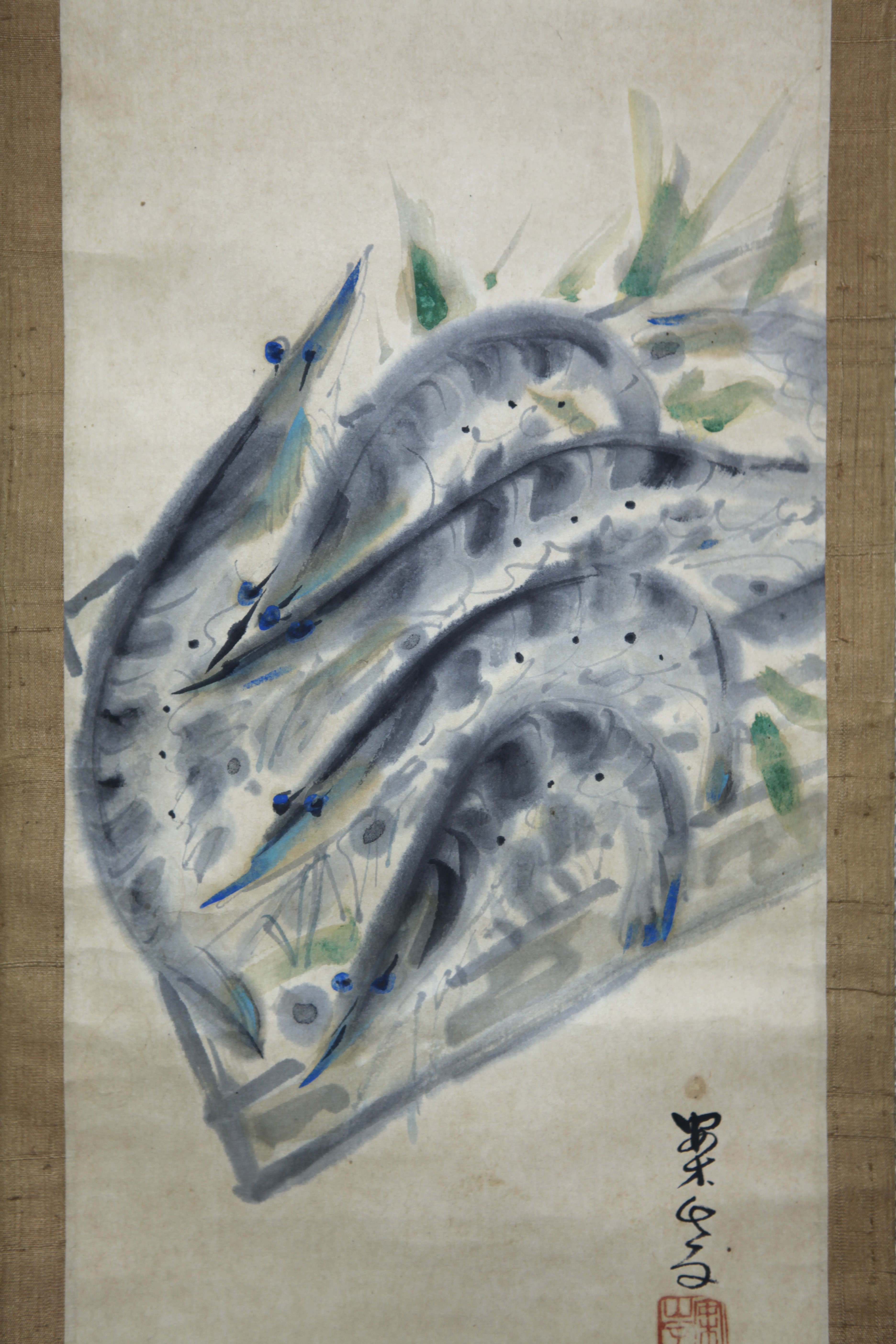 | 【真作】【風車】 田中案山子 「海幸」◎肉筆紙本 自題共箱◎昭和時代 東京の人 田中以知庵師事 院展 新興美術院 | ||||||||||||||||||||