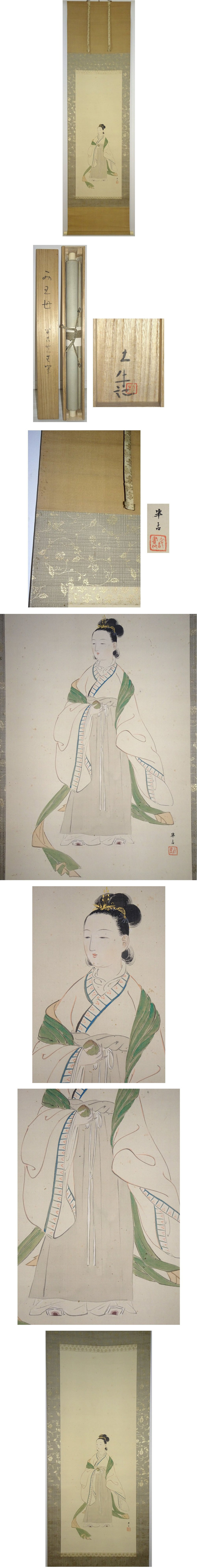 絹本 軸 真筆保証(真作) 金襴三段表装風帯つき ウブ幅 奥村土牛の箱書きあり 中身寸法108×41 薄い倉ジミ等少しあり 幅自体しっかりしています よろしくお願い致します