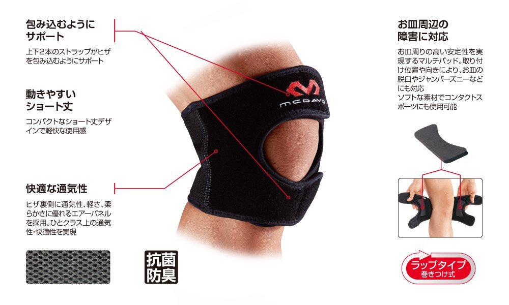 | 詳細 | 【商品名】 マルチアクション ニーラップ1 【サイズ(ヒザ回り/cm)】 S/30-35 M/35-40 L/40-48 【カラー】 ブラック(BK) 【レベル】 プレテクションレベル2(ミドルサポート) 【素材厚さ】 3mm 【特長】 ●動きを妨げないショート丈 ●ヒザ裏側にエアーパネルを採用。ひとクラス上の通気性・快適性を実現 ●上下2本のストラップがヒザを包み込むようにサポート ●取り外し可能なマルチパッドが様々なお皿周辺の障害に対応 ●カンタンに装着できるラップタイプ(巻きつけ式) |