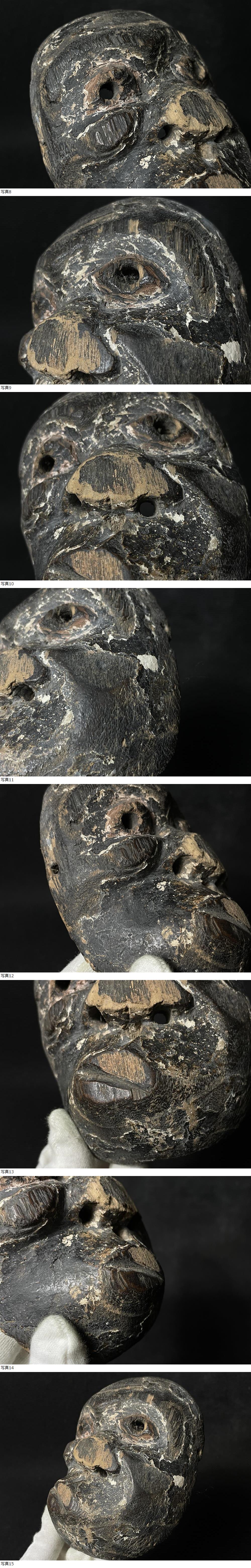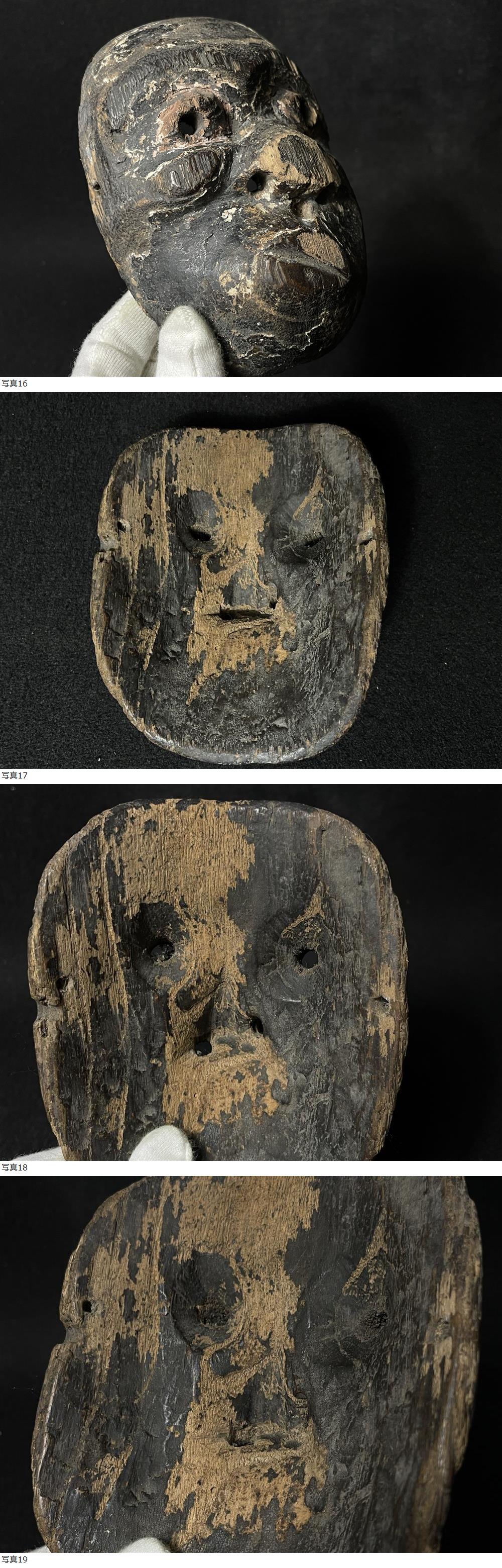 | 日本古美術 室町時代 木彫空吹面 うそぶき 火男古 空吹 木彫 神道 古面 能面 14.5×11.4cm |