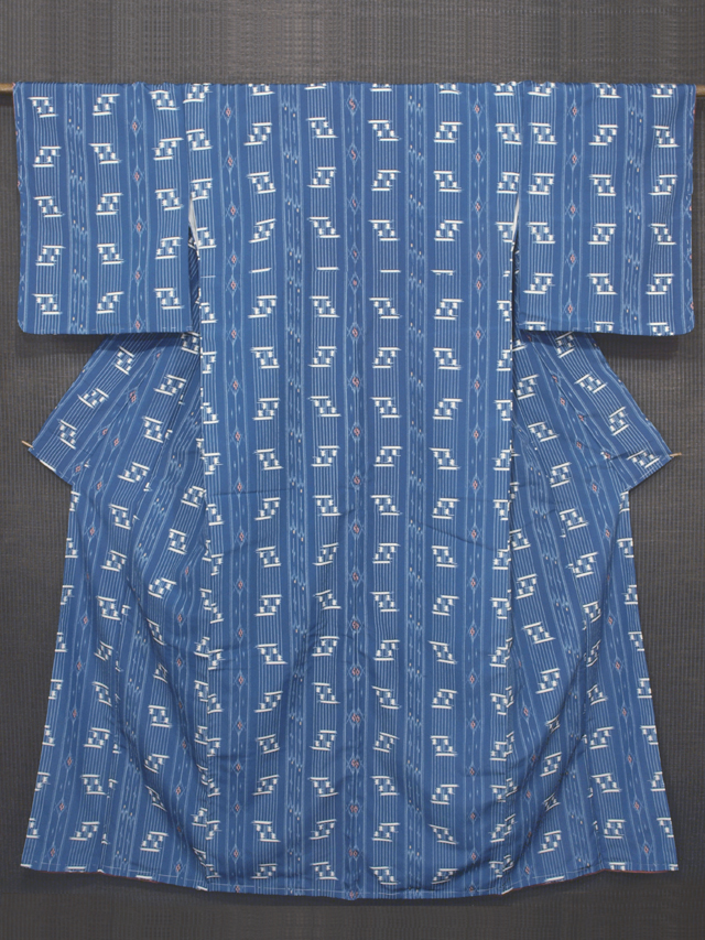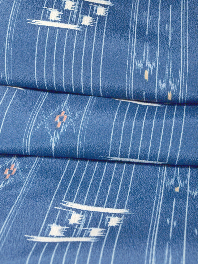 【しつけ付】琉球絣文 縮緬 洗える着物 小紋 丈165 TAND01002 風楽 |