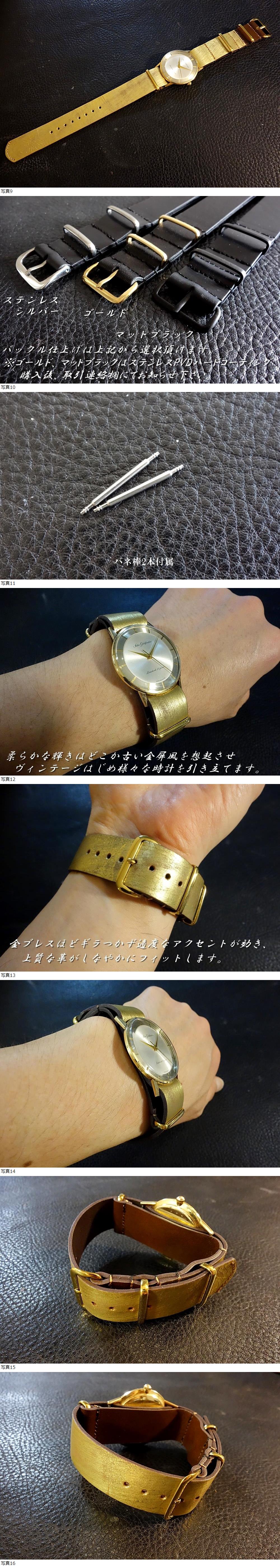 | ◆Leather NATO G10Strap◆高品質国産本牛革キップレザー エイジドゴールド カスタムオーダー(ラグ幅/バックルカラー) 受注製作 (納期10日前後) |