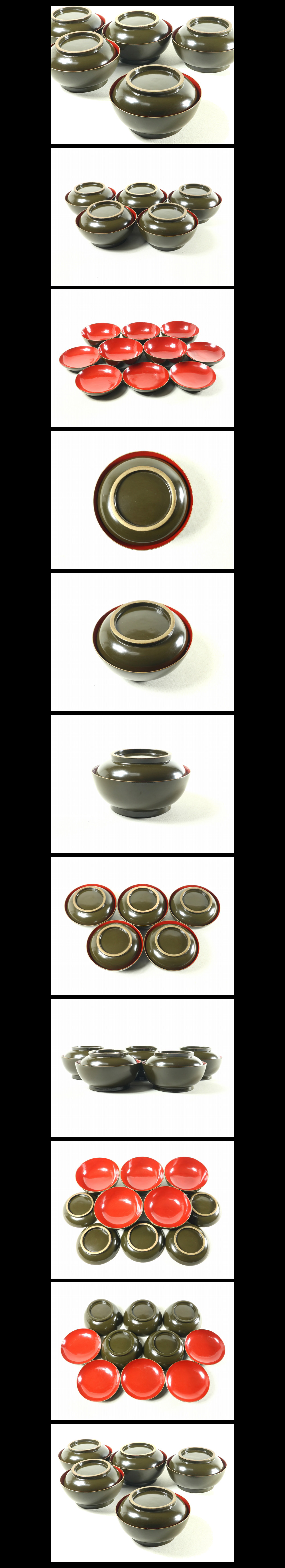 ●c083●【輪島塗菓子椀5客 塗分青地内朱金縁布着堅地明治期/煮物椀吸物椀】検お茶会煎茶道具茶懐石●西瓜●