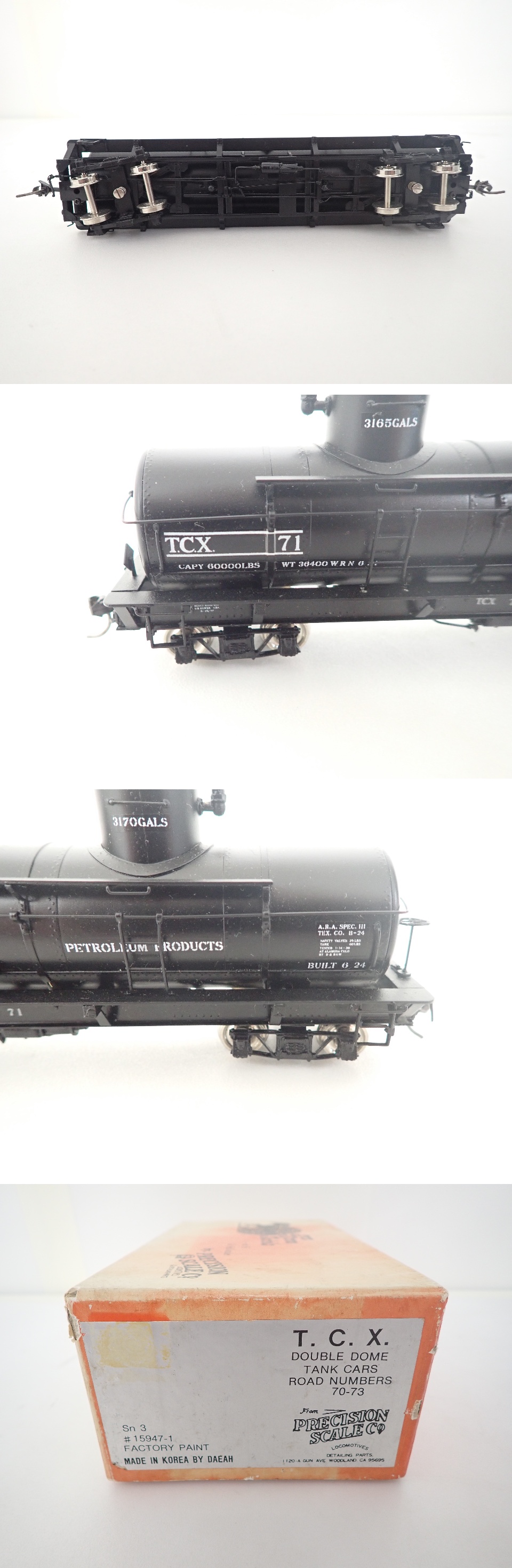 | PRECISION SCALE T.C.X. DOUBLE DOME TANK CARS #15947-1 Sn3 鉄道模型 ∴ 74422-107 | |||||||||||||||||||||||||||||||||||