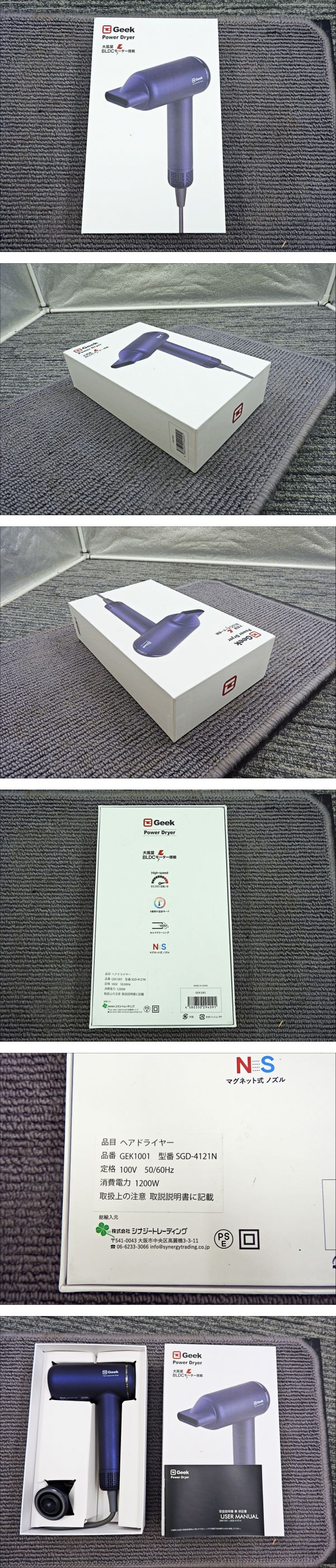 ◆ メーカー名: GEEK (ギーク) ◆ 商品名: Power Dryer ◆ 年式: 【2023年製】 ◆ サイズ: 高さ約200mm × 幅約210mm × 奥行約60mm ◆ 製品質量: 約380g (コード含まず) ◆ 主な機能: 大風量 (BLDCモーター搭載)、温度調整機能など ◆ 状態: 新品未使用品(展示品・検品済み) ■【動作状況】 ・ 動作状況: 新品未使用品でございます。店頭での展示品でしたが、当方にて検品を行い、問題なく動作することを確認しております。お客様には新品同様の状態でお渡しすることが可能です。点検の結果、特に問題はございません。 ■【外観状況】 ・ 状態: 外箱や取扱説明書が付属しております。外箱には展示や保管に伴う多少のスレや小傷がある場合がございます。商品本体は新品同様の状態です。 ■【付属品】